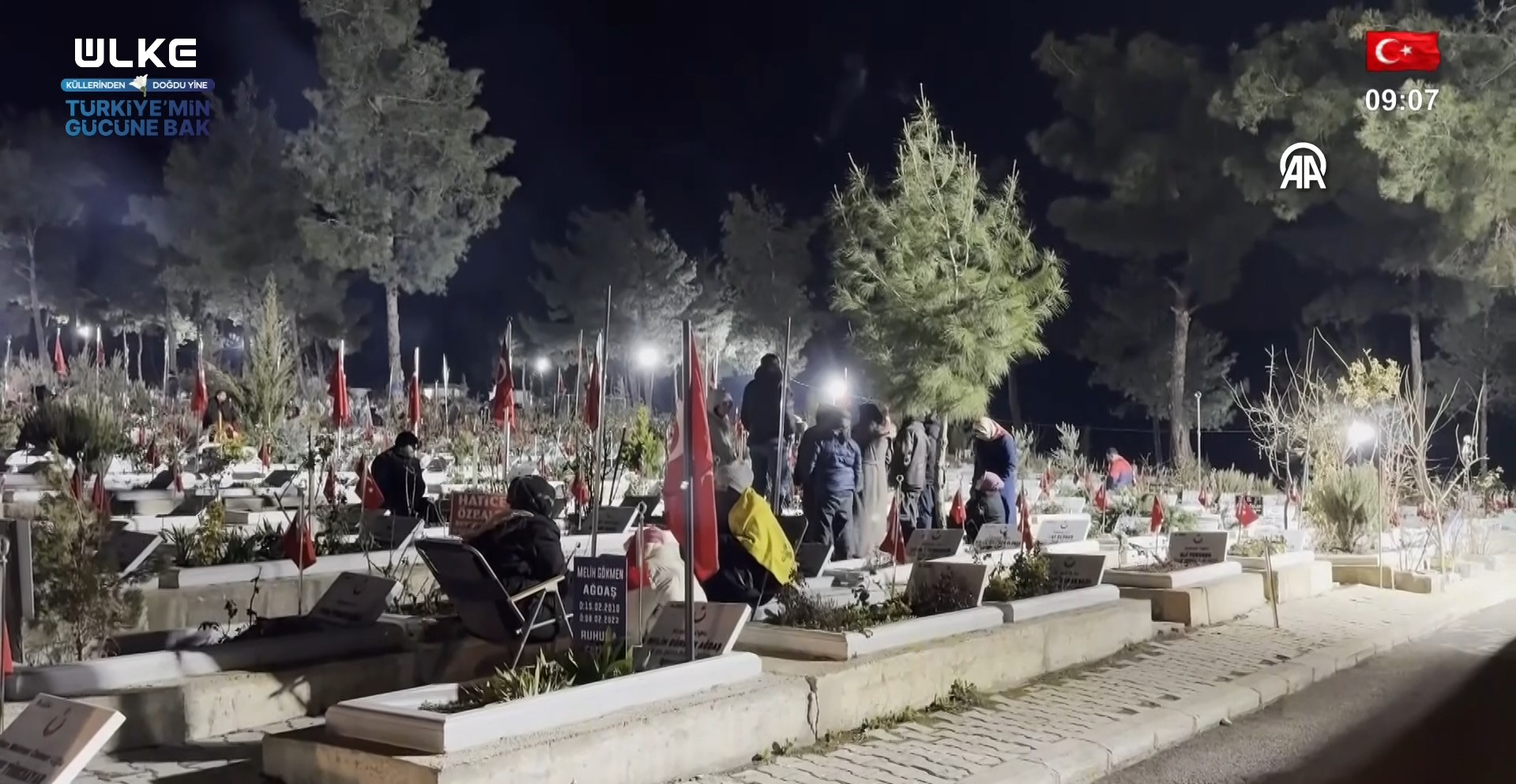 Gecenin karanlığına rağmen Kapıçam Şehir Mezarlığı'na giden vatandaşlar yakınlarının kabirlerini sulayıp çiçek bıraktı.