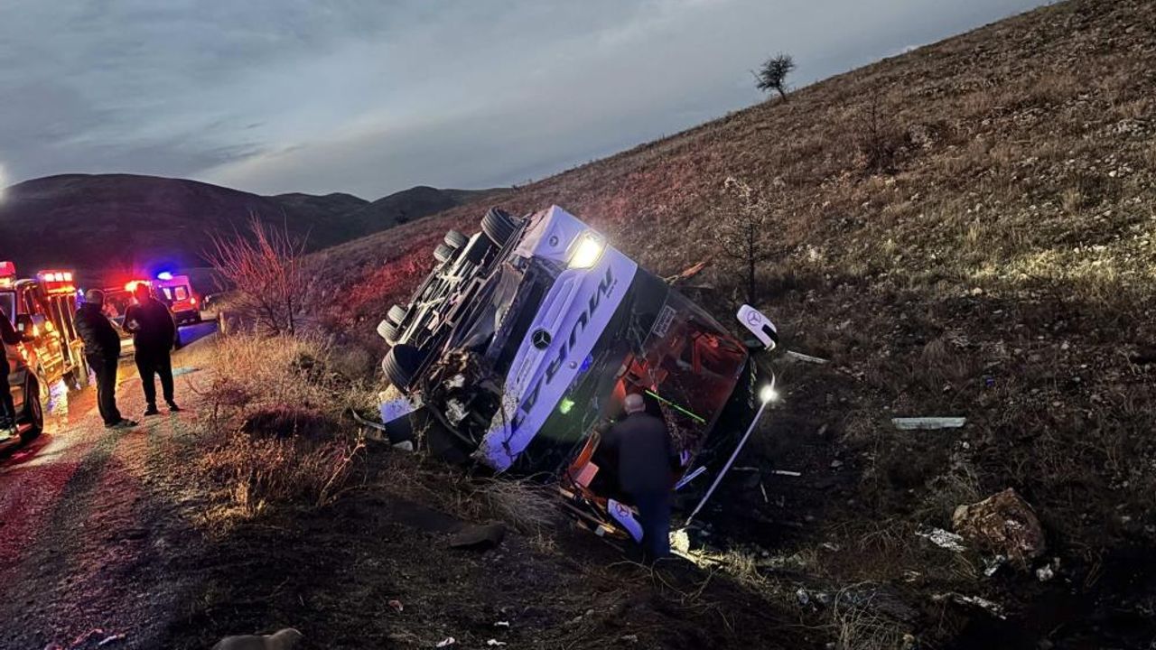 Elazığ Murat Turizm'e ait yolcu otobüsü henüz belirlenemeyen bir sebeple kontrolden çıkarak devrildi.