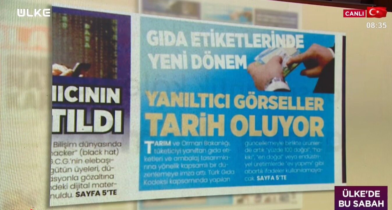 Ülke’de bu sabah programının sunucusu Şahin Karakaya, Tarım ve Orman Bakanlığı tarafından tüketiciyi yanıltan gıda etiketleri ve ambalaj tasarımlarına yönelik kapsamlı düzenlemeyi canlı yayında anlattı.