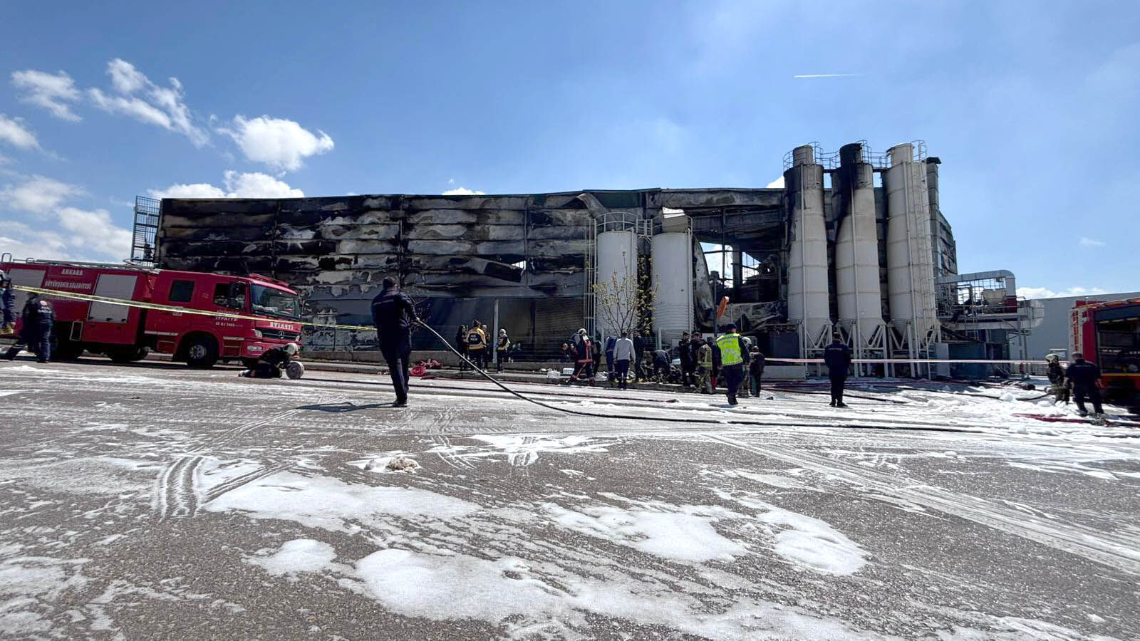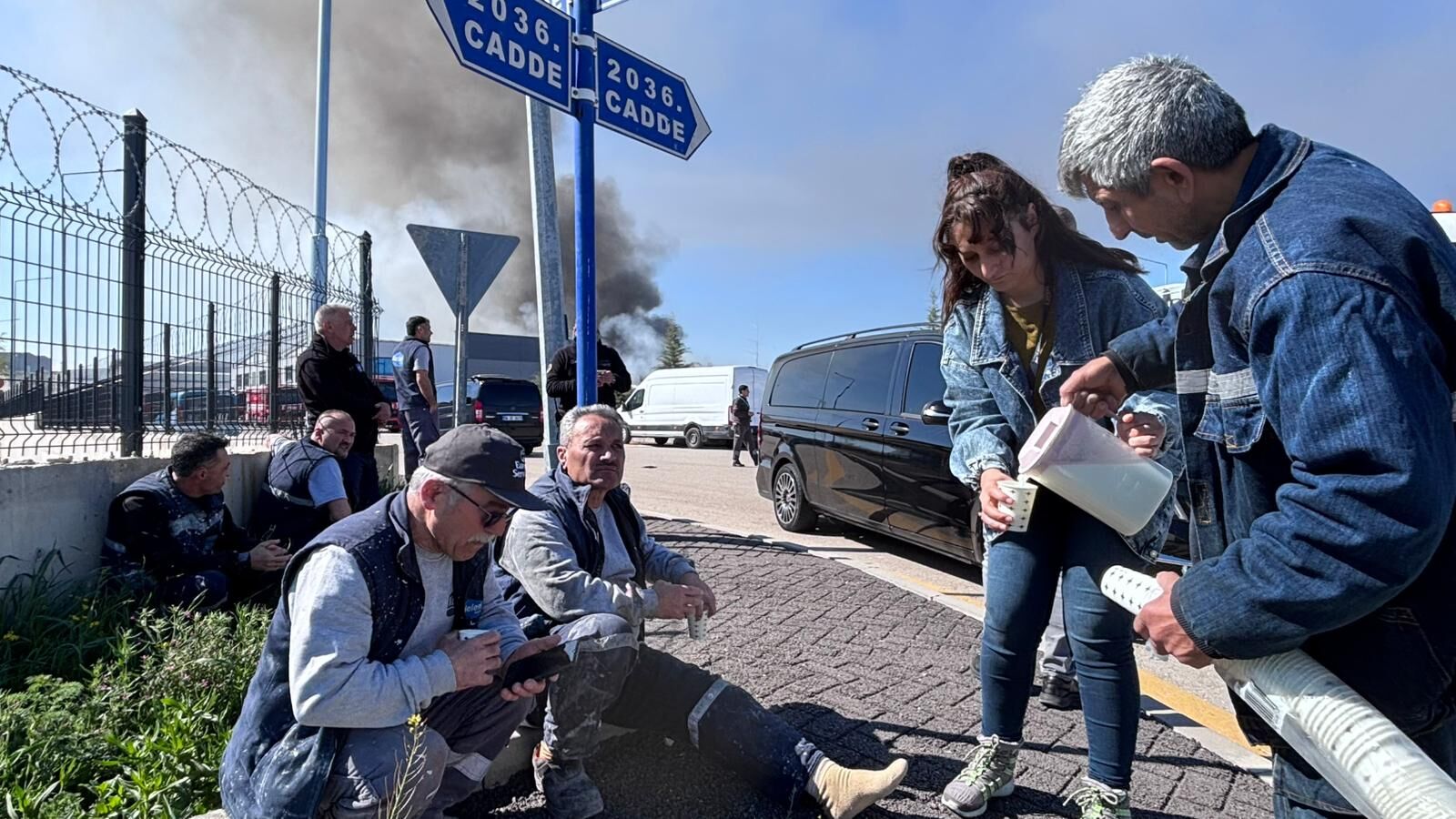 Müdahale sırasında dumandan etkilenen bazı itfaiye erleri ve işçilere ise ayran dağıtıldı.