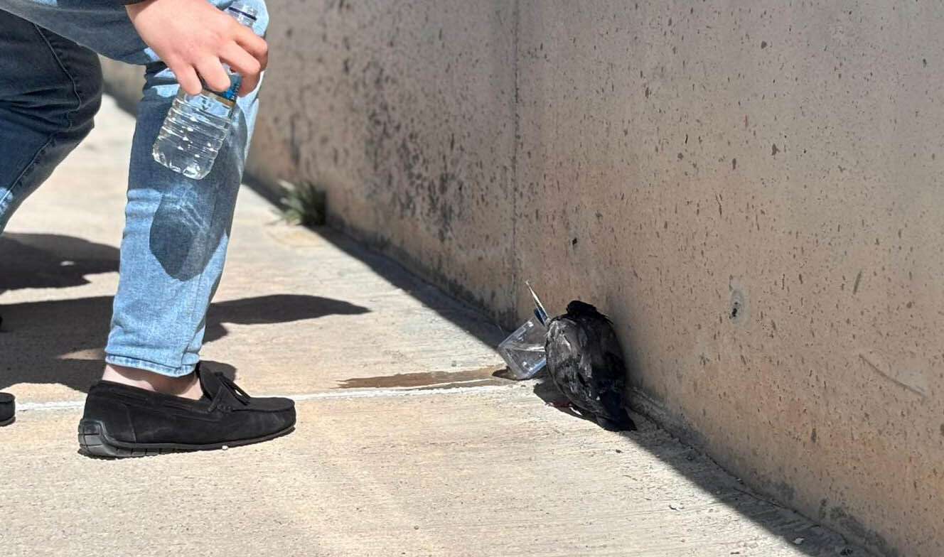 Dumandan etkilendiği belirlenen güvercine su verilip ilk müdahalesi yapıldı.