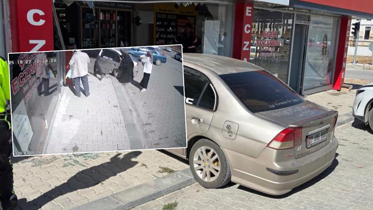 Kaza anının çevredeki güvenlik kameralarına yansıdığı olayda aracın yavaşça hareket edip bir anda eczanenin camına çarpması yer alırken olayla ilgili inceleme başlatıldı.