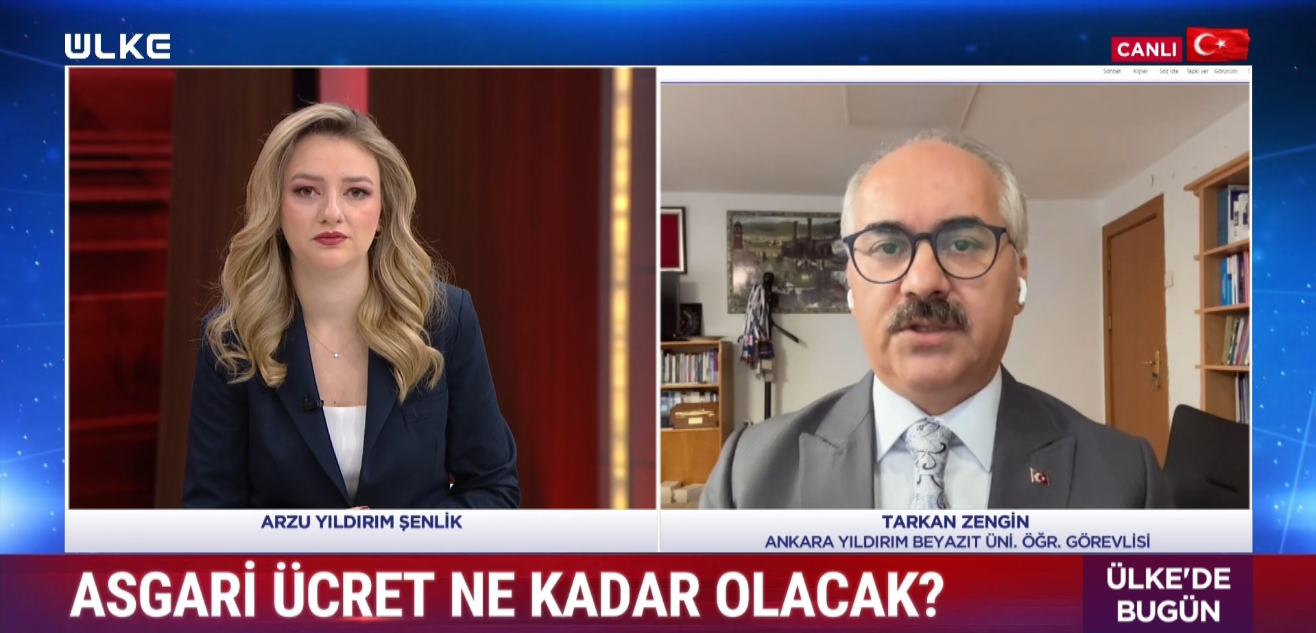 Ankara Yıldırım Beyazıt Üniversitesi Öğretim Görevlisi Tarkan Zengin, 2026 yılında geçerli olacak asgari ücrete dair Ülke TV canlı yayınında önemli tespitlerde bulundu.