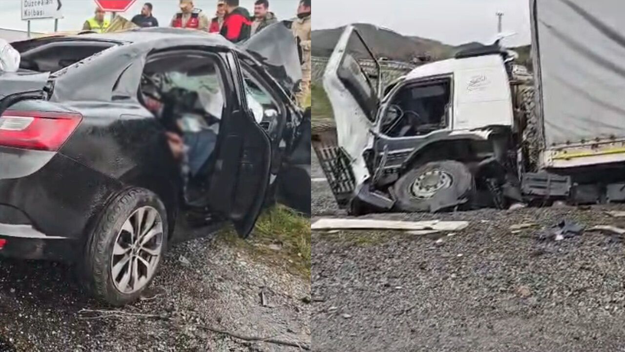 Yağmurun etkili olduğu bölgede Van yönünden gelen TIR, karşı yönden gelen 06 DEF 867 plakalı otomobille çarpıştı.