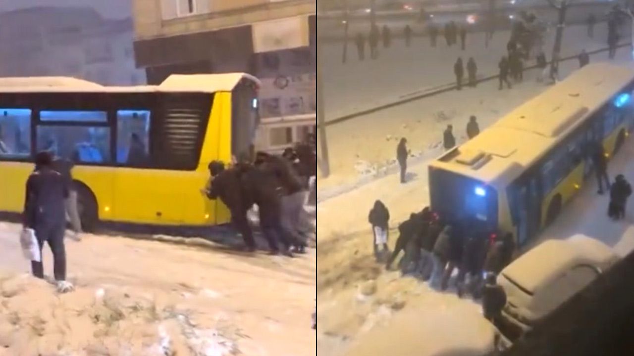 Otobüs, vatandaşların itmesi sonucu yoluna devam etti.