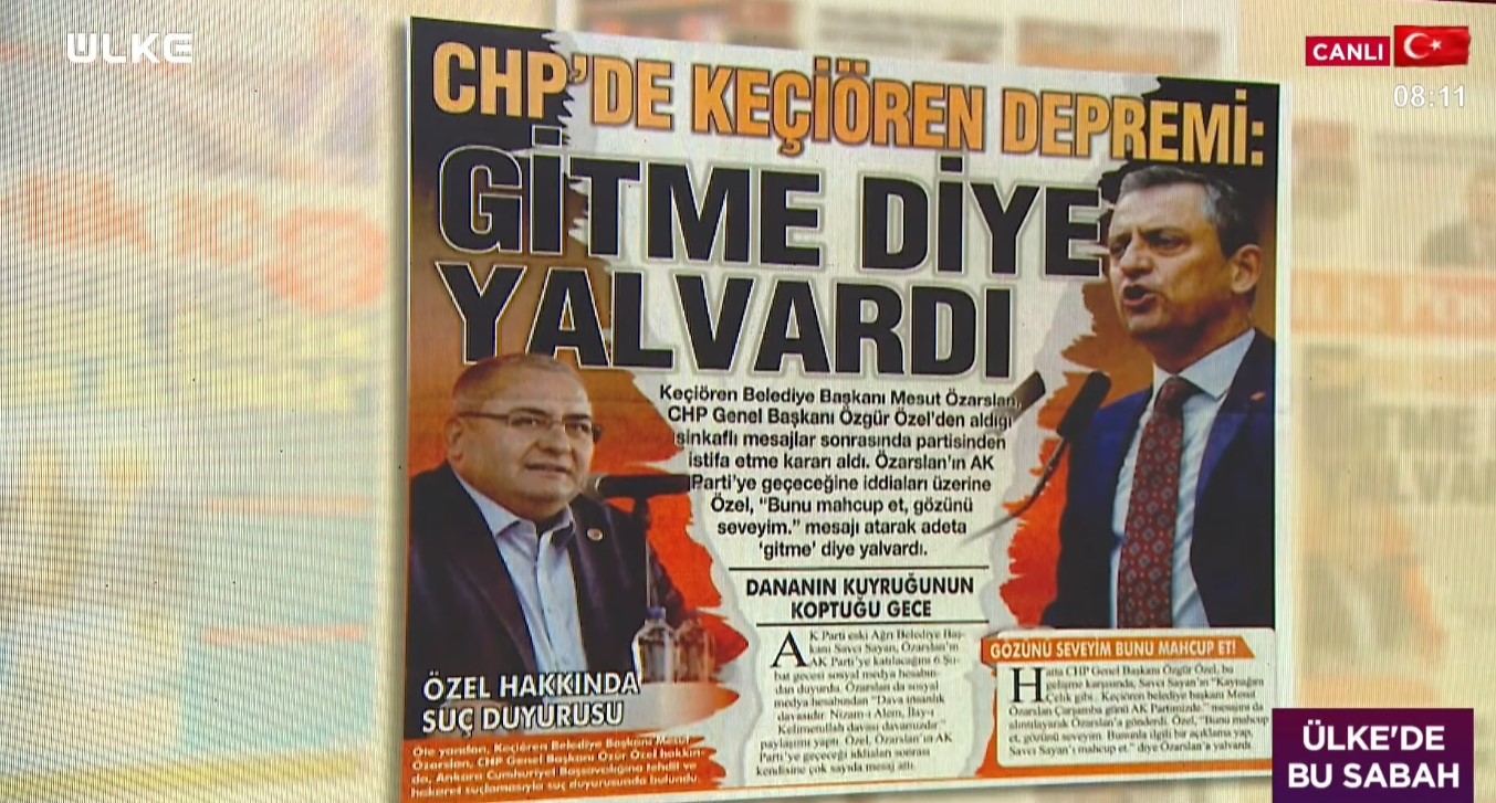Ülke’de Bugün programının sunucusu Şahin Karakaya, Mesut Özarslan’ın CHP lideri Özel tarafından mazur kaldığı “küfürlü” yazışmaları yorumladı.