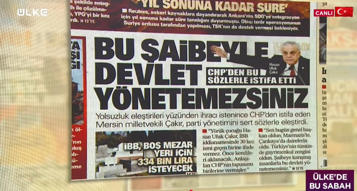 Çakır, ihraç talebiyle disiplin kuruluna sevk edilmesine ilişkin, "Yüksek Disiplin Kurulu'nda kimin önüne gideceğim? İstanbul Büyükşehir Belediyesi iddianamesinde 30 yerde ismi geçen Turan Taşkın Özer'in önüne gideceğim öyle mi? Yörük çocuğu Hasan Ufuk Çakır, suçlanan adamların önüne gelip ifade vermez, önce kendileri aklanıp gelecek. Ben söylemiyorum, soruyor savcı, 'Karı-koca 30 milyon liralık araban var, sen 90 bin liralık maaş alıyorsun. Peki Sarıyer'deki 5 milyon dolarlık villanı nasıl açıklayacaksın' diyor. Adam ifadesinde, '100 bin dolar Ekrem İmamoğlu'ndan alıyordum' diyor.