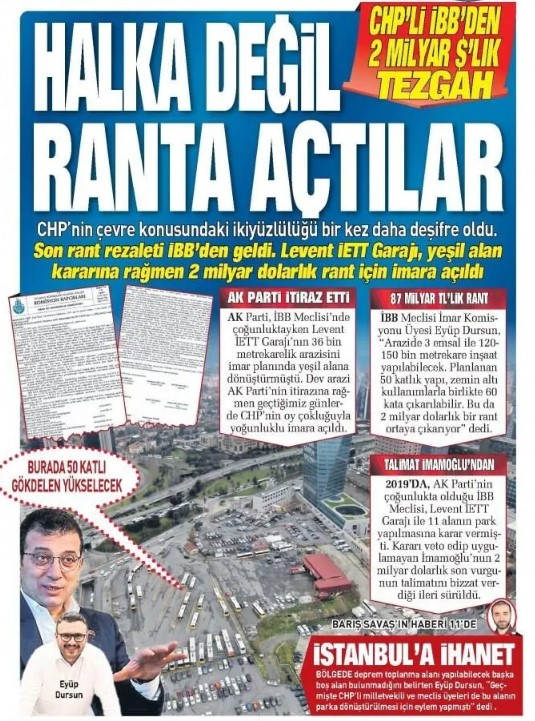 SABAH’ta yer alan habere göre; zemin üstü 50 kat olacak şekilde 3 emsal ile 120-150 bin metrekare olarak meclisten geçirilen imar planıyla 2 milyar dolarlık (yaklaşık 87 milyar TL) rant oluşturuldu.