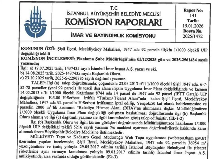 AK Parti'nin meclis çoğunluğuna sahip olduğu dönemde yeşil alan olarak planlanan ve kamu yararı gerekçesiyle yapılaşmaya kapatılan alan, CHP'li İBB yönetimi tarafından alınan kararla yüksek yoğunluklu inşaat alanına dönüştürüldü.