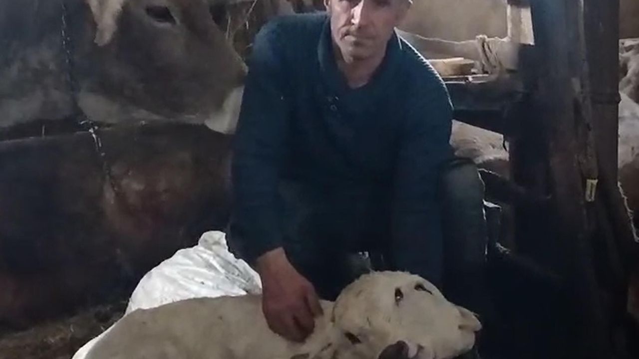 Yapılan kontrollerde doğacak buzağının çift başlı olduğu belirlenince veteriner hekimden yardım istendi. İneği kontrol eden veteriner hekim, buzağıyı sezaryen yöntemi ile aldı. 2 başı, 2 kulağı, 4 gözü bulunan buzağının sağlıklı olduğu belirtildi.