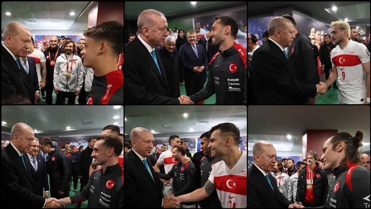 Cumhurbaşkanı Erdoğan, Kocaeli Stadyumu'nda oynanan Türkiye-Gürcistan maçının ardından Türkiye A Milli Futbol Takımı oyuncularını ve teknik heyetini tebrik etti.
