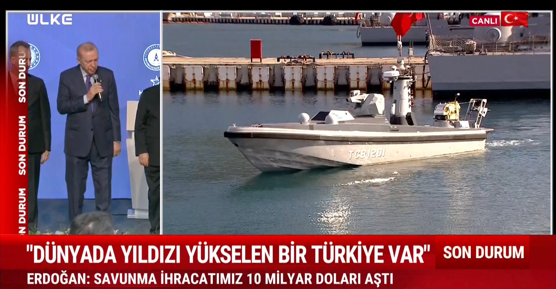 Artık 3T modelini yani tespit, teşhis ve taarruz süreçlerini yerli ve millî teknolojisiyle tatbik eden, dünyada yıldızı giderek yükselen bir Türkiye var. Büyük bir gururla ifade etmek isterim ki bugün Türkiye dünyada kendi savaş gemisini geliştirip denize indiren on ülkeden biridir. Savunma ve havacılık ihracatında her geçen yıl yeni rekorlar kırıyoruz. Bakınız sadece geçtiğimiz sene savunma ihracatımız bir önceki yıla kıyasla yüzde 48 oranında artarak 10 milyar doları geride bıraktı. Bu rakam dikkatinizi çekerim, 2002'de yalnızca 248 milyon dolardı. Hâlihazırda savunma ihracatında dünyanın en büyük 11. ülkesiyiz. 2028’de 11 milyar dolarlık ihracat hedefimize ulaşarak savunma ve havacılık ihracatında inşallah dünyada ilk 10 ülke arasına gireceğiz. 2025 sonu itibarıyla savunma sanayindeki proje hacmimiz 100 milyar doların, proje sayımız ise 1400'ün üzerine çıktı.