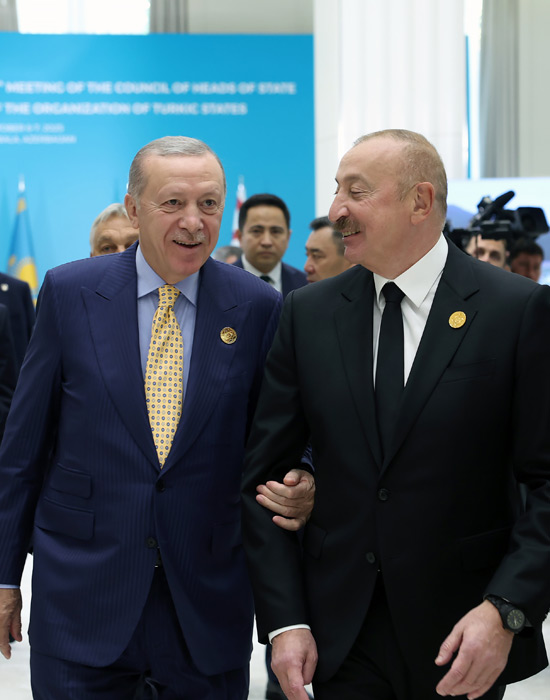 Erdoğan, TDT Devlet Başkanları Konseyi 12. Zirvesi'nin yapıldığı Haydar Aliyev Kongre Merkezi'ne giriş yaptı. Aliyev tarafından karşılanan Erdoğan hatıra fotoğrafı çektirdikten sonra Aliyev ile bir süre ayakta sohbet etti.