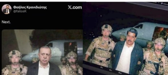 Yunan siyasetçi Kranidiotis'in yapay zeka teknolojisi kullanarak Cumhurbaşkanı Erdoğan'ı Venezuela Devlet Başkanı Maduro'nun yerine koyup ABD ajanları tarafından kaçırıldığını tasvir etmesi büyük tepkiye neden oldu.