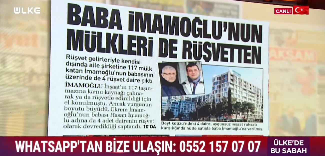 Sabah Gazetesi’nde yer alan habere göre; soruşturma dosyasında yer alan MASAK raporunda, Ekrem İmamoğlu'nun İBB Başkanlığı yaptığı dönem olan 8 Aralık 2020 ile 11 Aralık 2023 tarihleri arasında İmamoğlu İnşaat Ticaret ve Sanayi Anonim Şirketi'ne 19 dükkân, 19 mesken, 63 konut, 8 ofis, 6 büro, 2 arsa olmak üzere toplam 117 adet taşınmaz alındığı belirlendi.