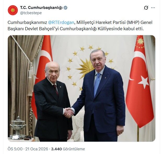 Cumhurbaşkanı Erdoğan ile MHP lideri Bahçeli arasında sürpriz bir görüşme gerçekleşti.