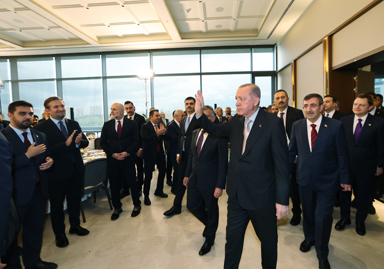 Sözü Özgür Özel'e getiren Cumhurbaşkanı Erdoğan, "Grup kürsüsüne mazot bidonu ile çıkmayı biliyorsun hadi şimdi de su bidonu ile çıksana yüreğin yetiyorsa. Millete hesap verecek saygısı yüreği yok. Kukla genel başkanla ancak bu kadar oluyor." şeklinde konuştu.