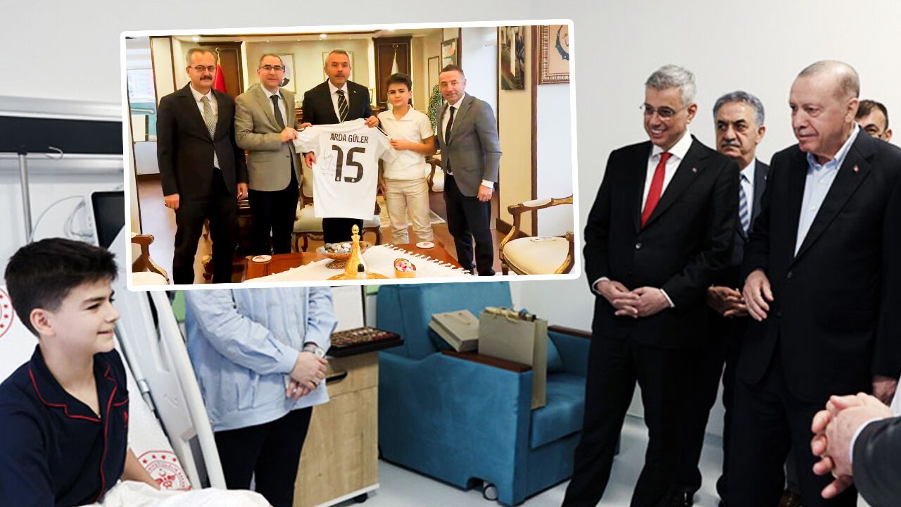 Vali Baydaş, Arda Güler'in milli ve manevi duruşuyla örnek olduğunu belirterek, "Biz hastaneye geldik ve dedik ki hasta ziyaret edelim. Safa dedi ki 'Ben forma istiyorum.' Cumhurbaşkanımız da Gençlik ve Spor Bakanımıza konuyu talimatlandırdı. Gençlik Spor Bakanımız da formayı imzalatarak hediye olarak gönderdi. Biz sana formayı hem Cumhurbaşkanımızın hem Gençlik ve Spor Bakanımızın hem de Arda'nın hediyesi olarak veriyoruz. Normalde imza atarken imza atıp geçerler ama üstüne ismini yazarak imzalamış." ifadelerini kullandı.