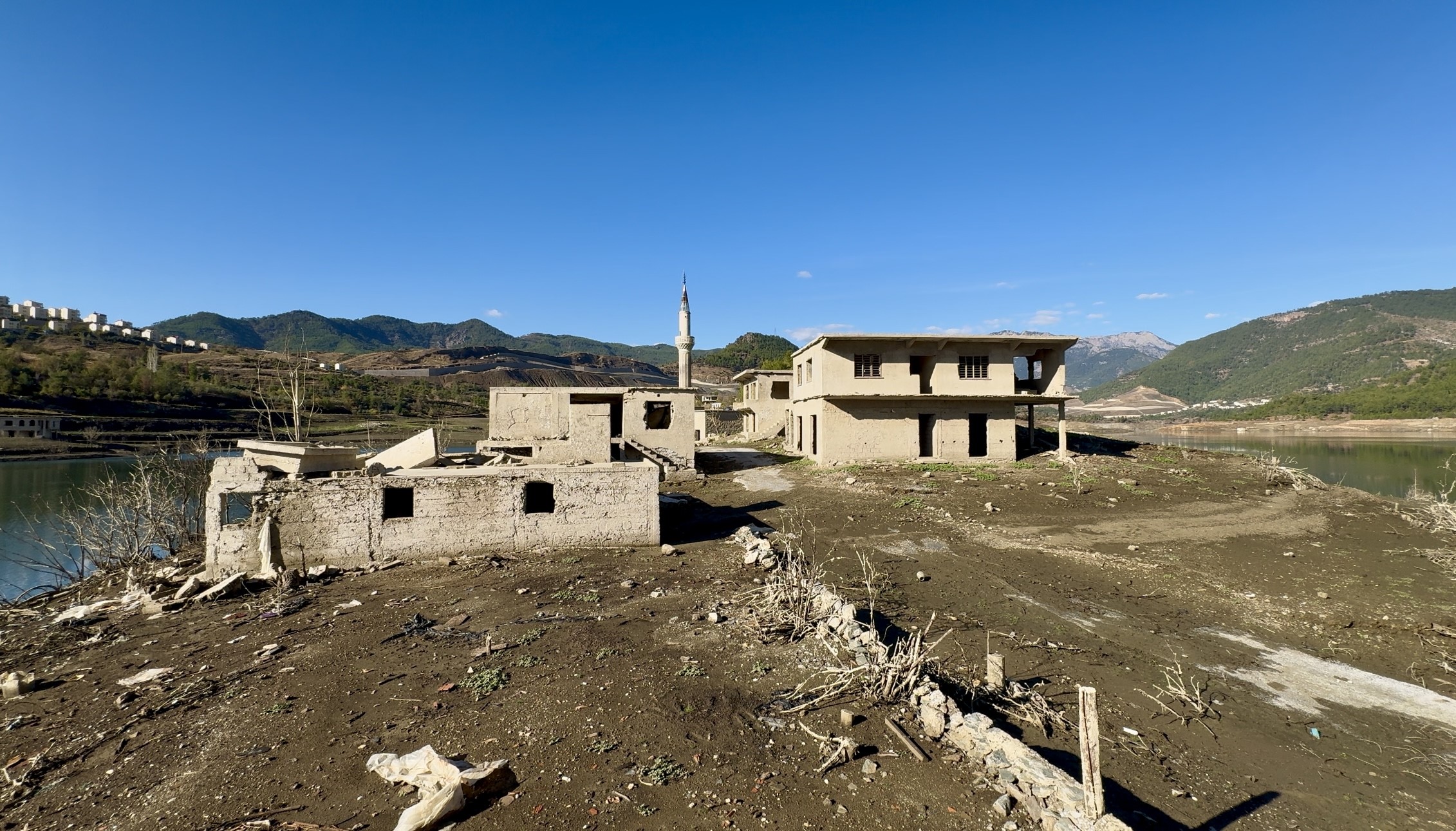 Uzun yıllardır görünmeyen köy evleri, sokaklar ve Akine Camisiyle minaresi gezilecek duruma geldi.