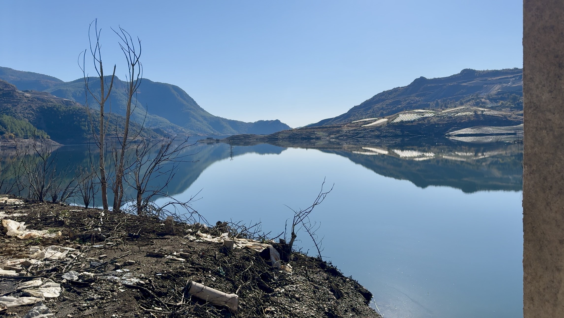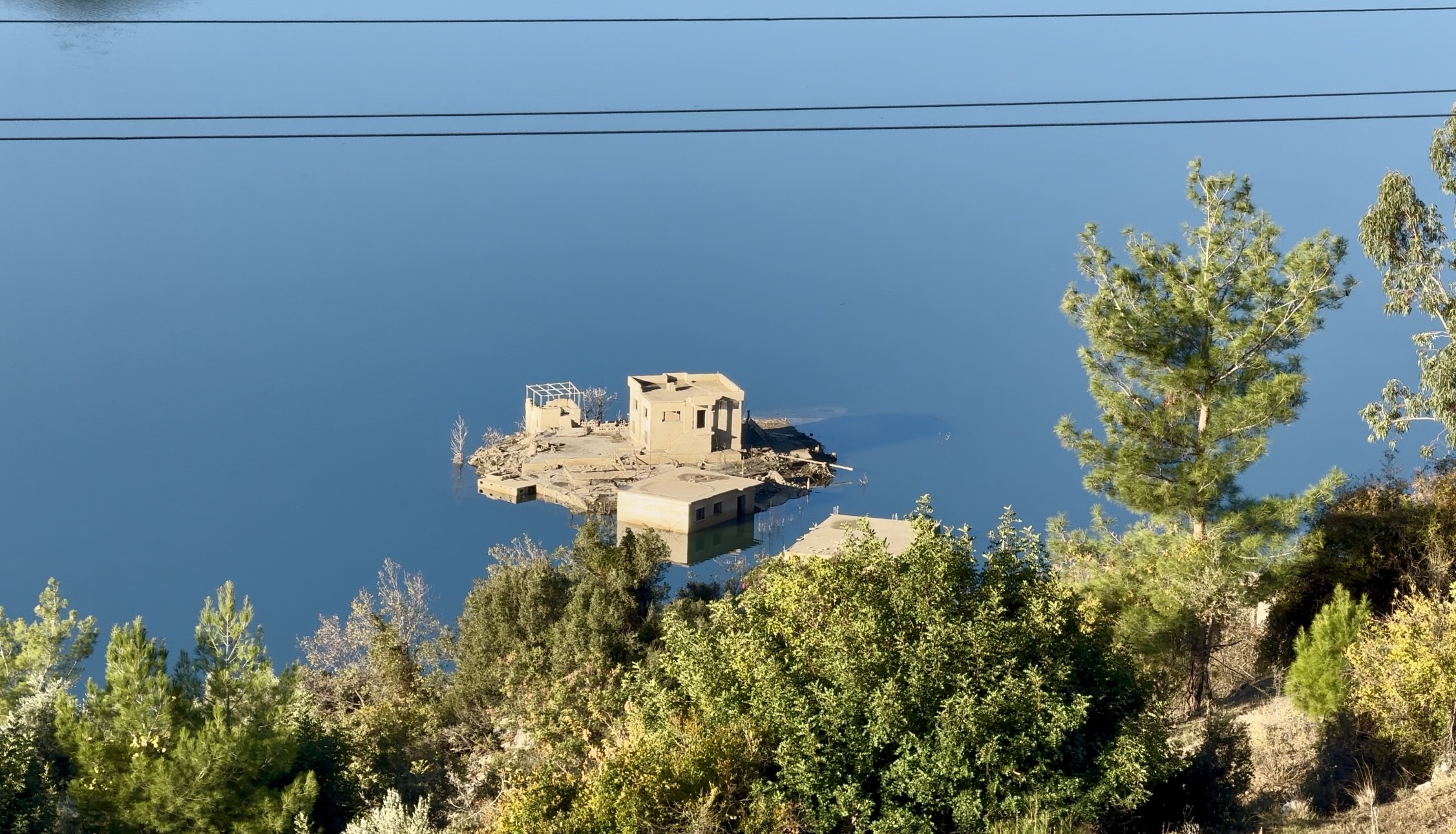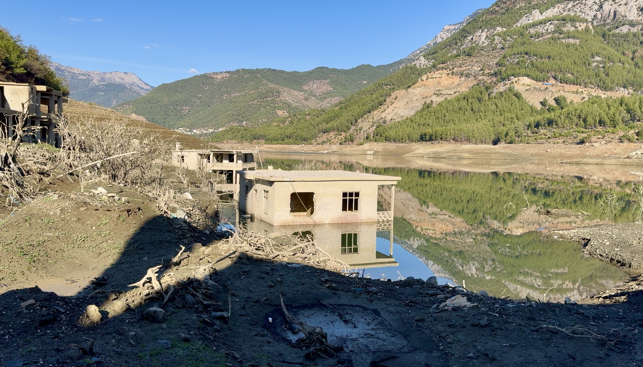 Su seviyesindeki düşüşle birlikte, 2014 yılında baraj yapımı sırasında sular altında kalmıştı.