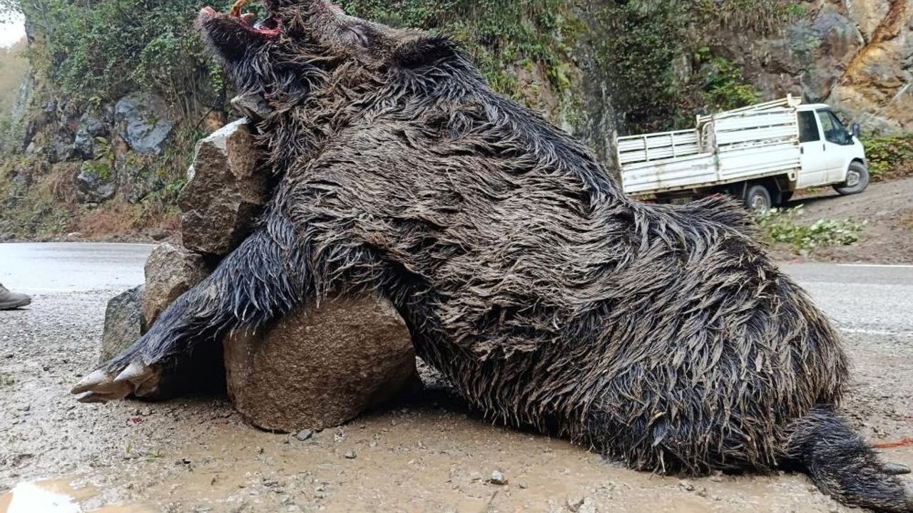 Araklı ilçesinin Yeşilyurt Vadisi’nde av köpeklerinin desteğiyle düzenlenen sürek avının dikkat çeken anı ise yaklaşık 300 kilo ağırlığındaki dev yaban domuzunun etkisiz hale getirilmesi oldu.