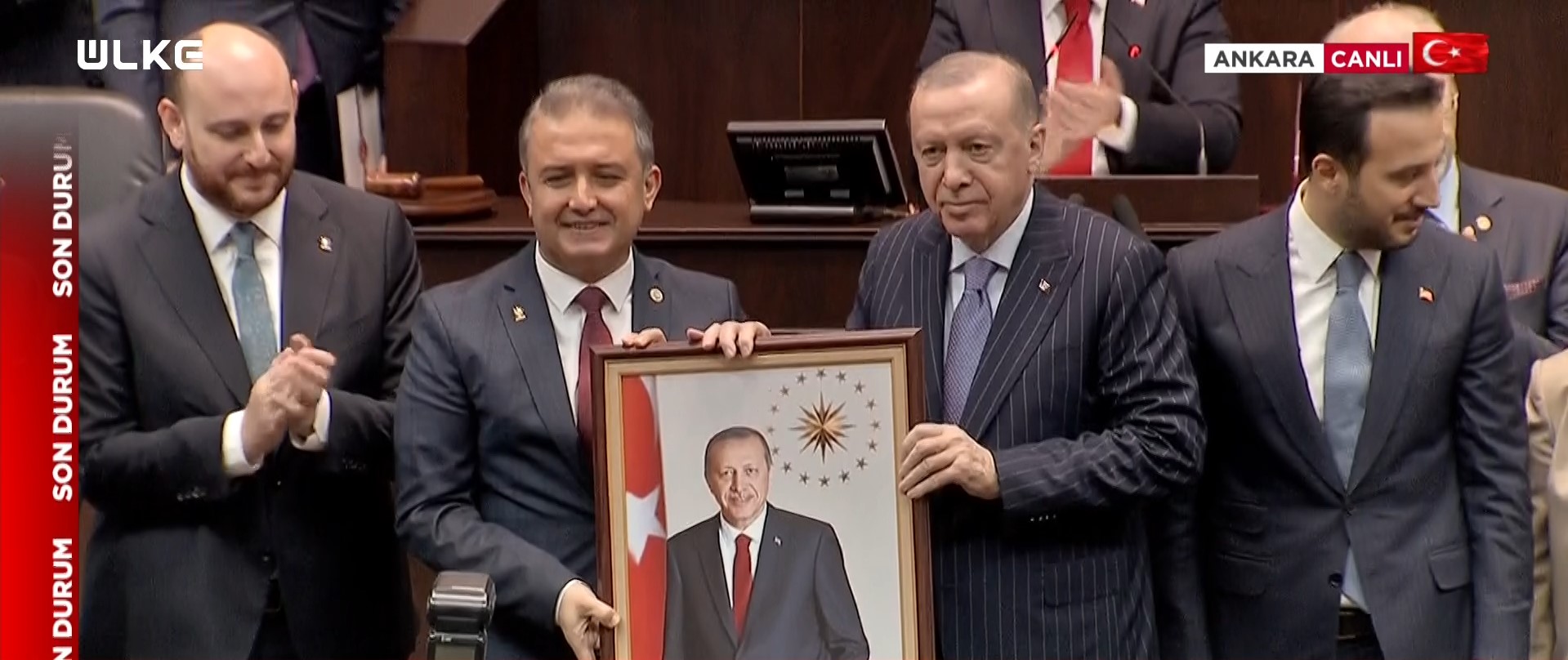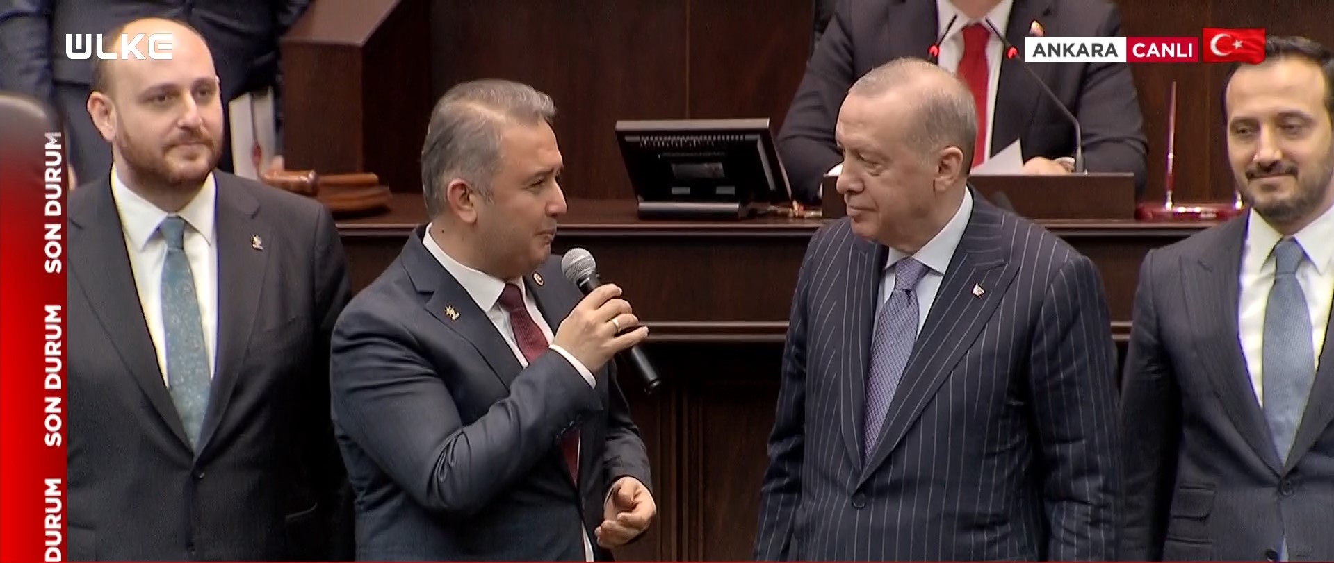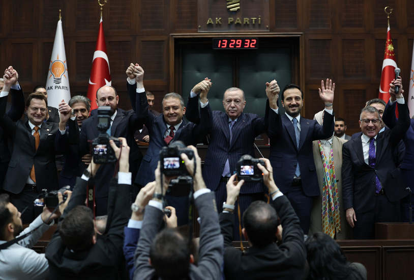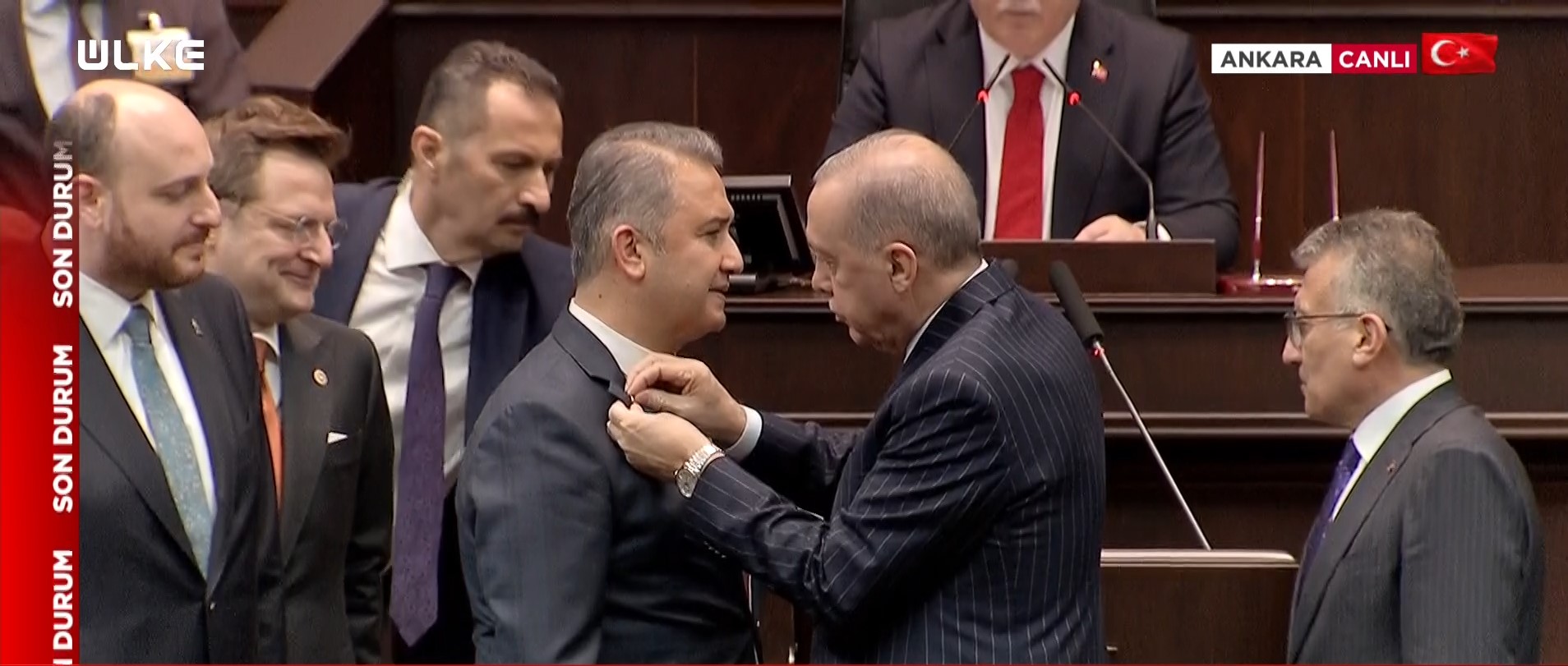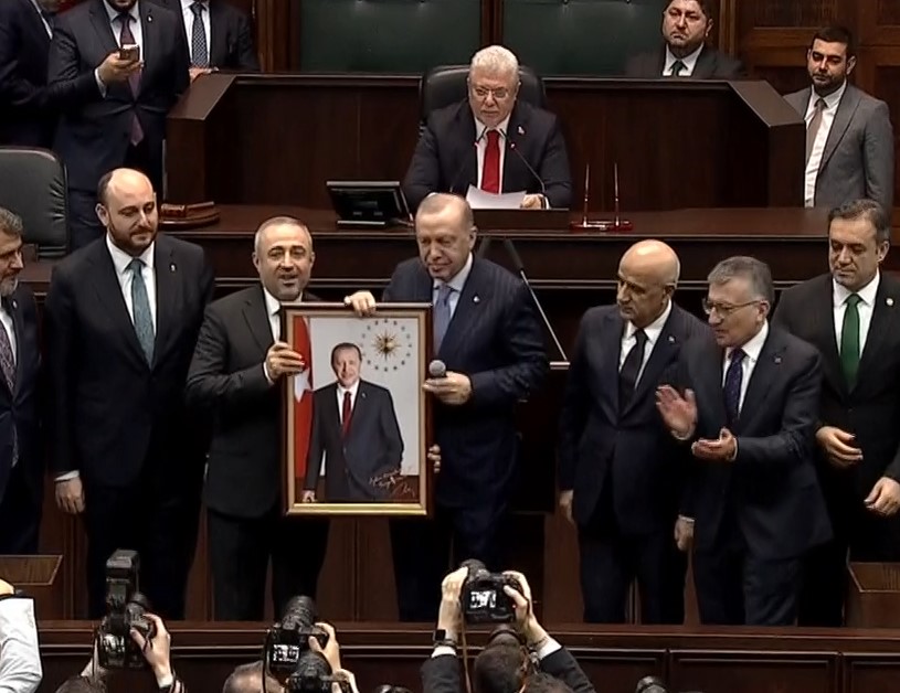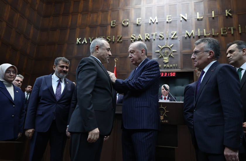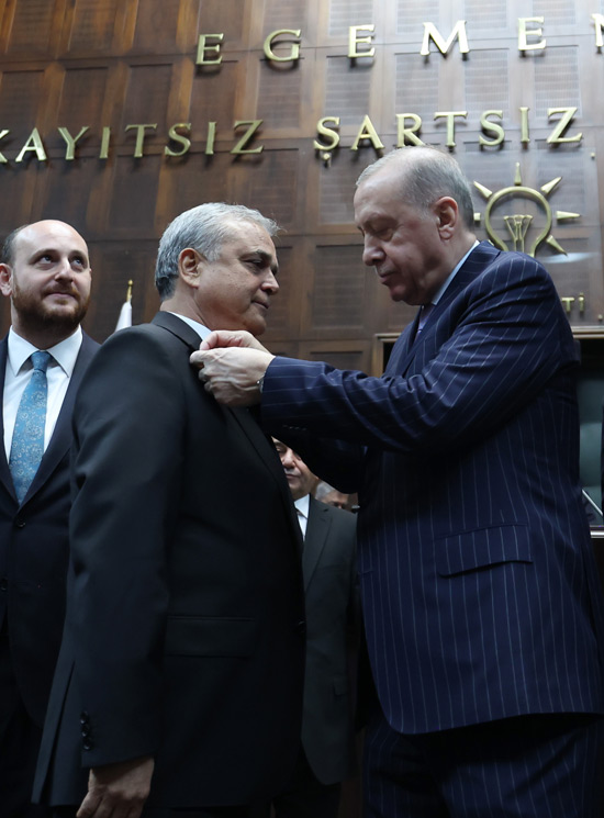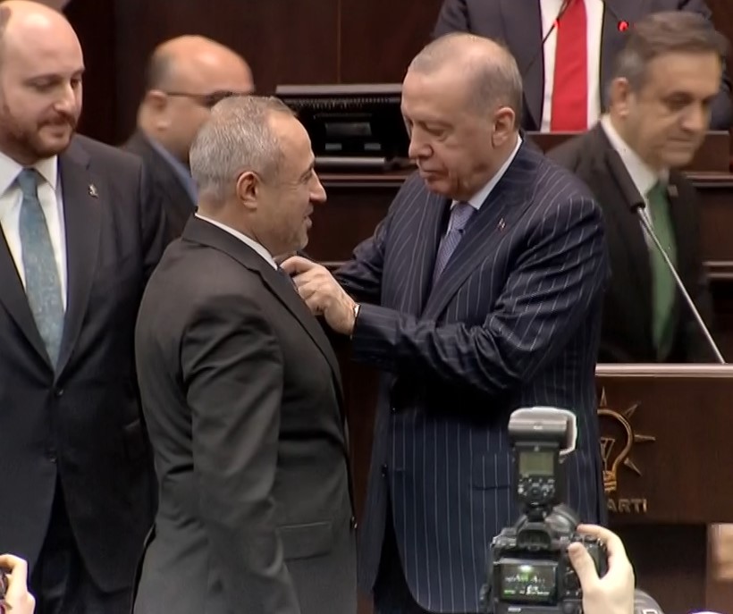 Üç milletvekilinin rozetlerini, TBMM'deki grup toplantısında Cumhurbaşkanı Recep Tayyip Erdoğan bizzat takdim etti.