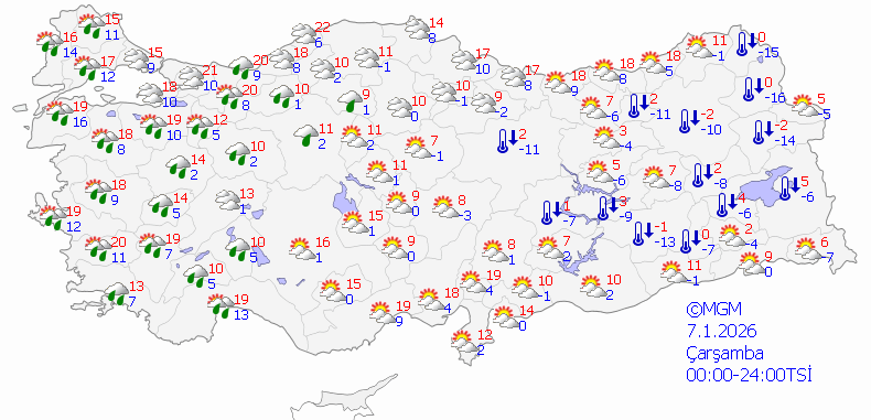 Öte yandan, yeni haftada sıcaklıkların mevsim normalleri altında seyreden hava sıcaklıklarının, doğu kesimlerde artarak mevsim normalleri üzerine yükseleceği tahmin ediliyor.