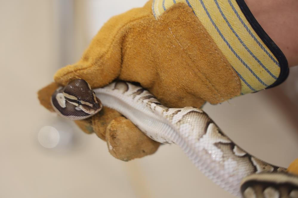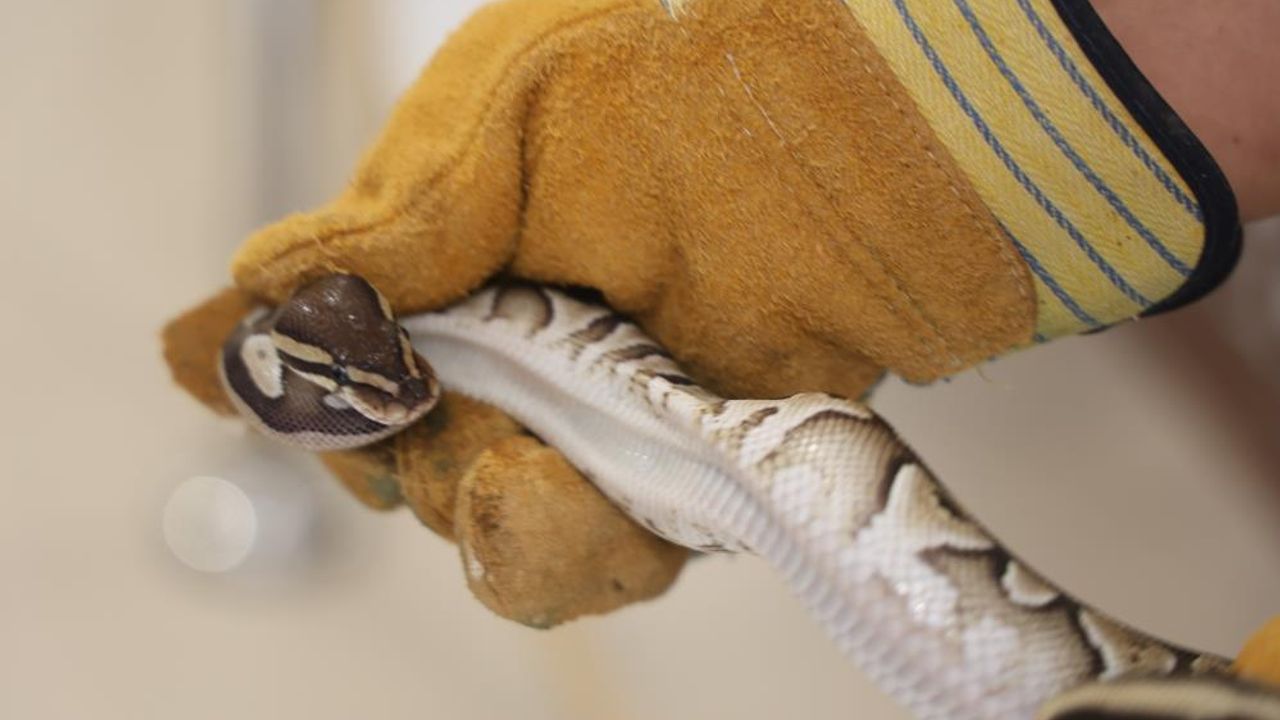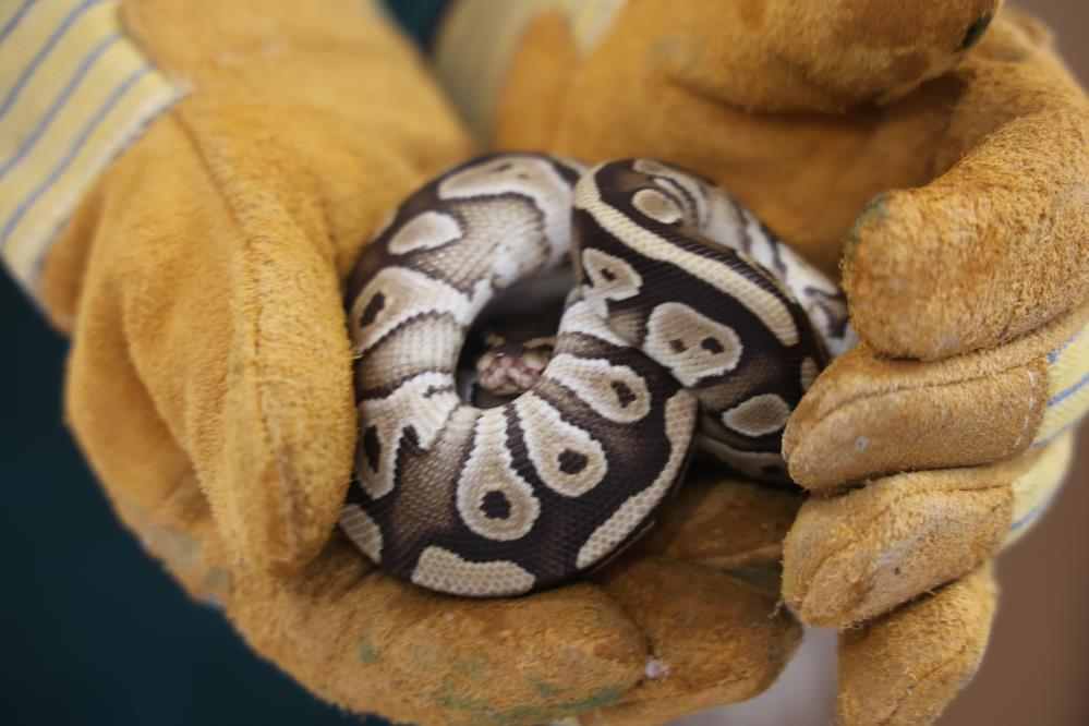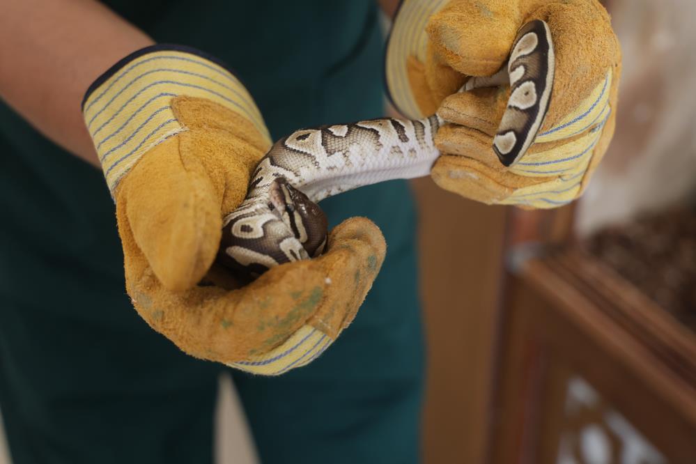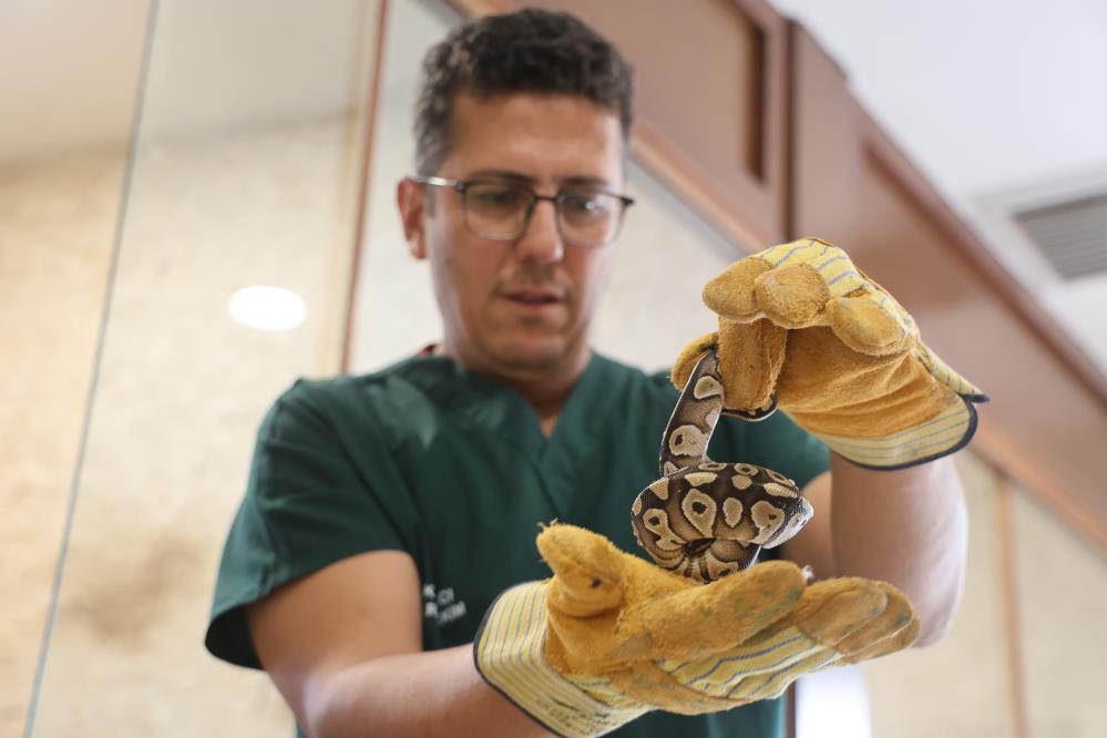 Ekipler tarafından teslim alınan yavru piton, sağlık kontrollerinin yapılması amacıyla Karatay Hayvanat Bahçesi veteriner hekimlerine teslim edildi.