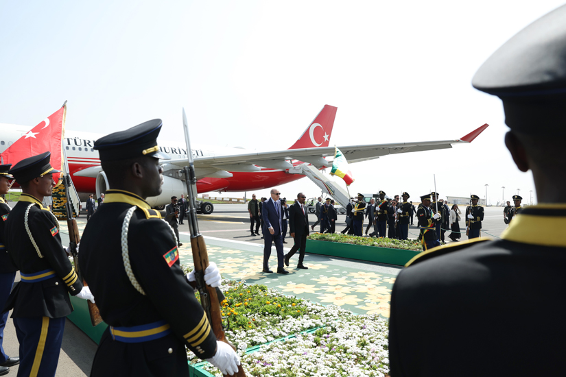 Cumhurbaşkanı Erdoğan, Addis Ababa Bole Uluslararası Havalimanı'nda Etiyopya Başbakanı Abiy Ahmed, Etiyopya Dışişleri Bakanı Gedion Timothewos ve Türkiye'nin Addis Ababa Büyükelçisi Berk Baran tarafından karşılandı.
