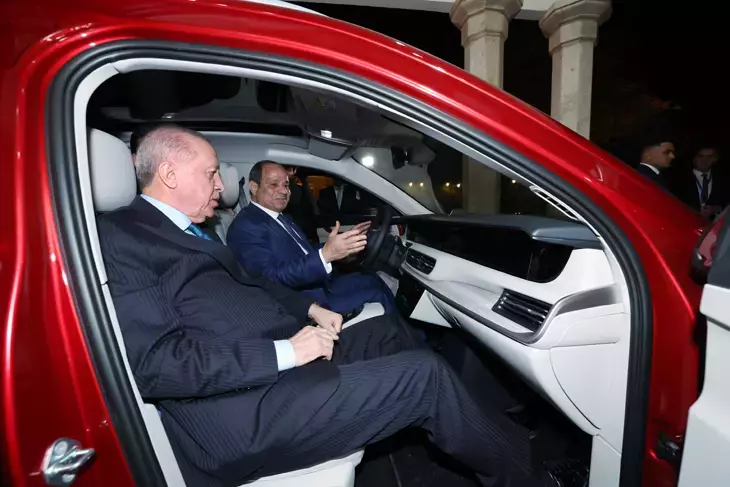 Cumhurbaşkanı Erdoğan, aracı bizzat tanıtarak mevkidaşı Sisi'ye otomobilin özellikleri hakkında bilgi verdi. Sisi, Türkiye'nin yerli otomobilini inceleyerek Erdoğan'a teşekkürlerini iletti.