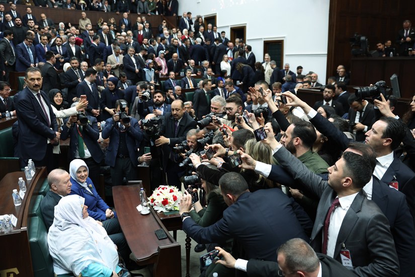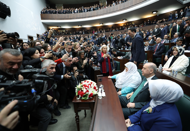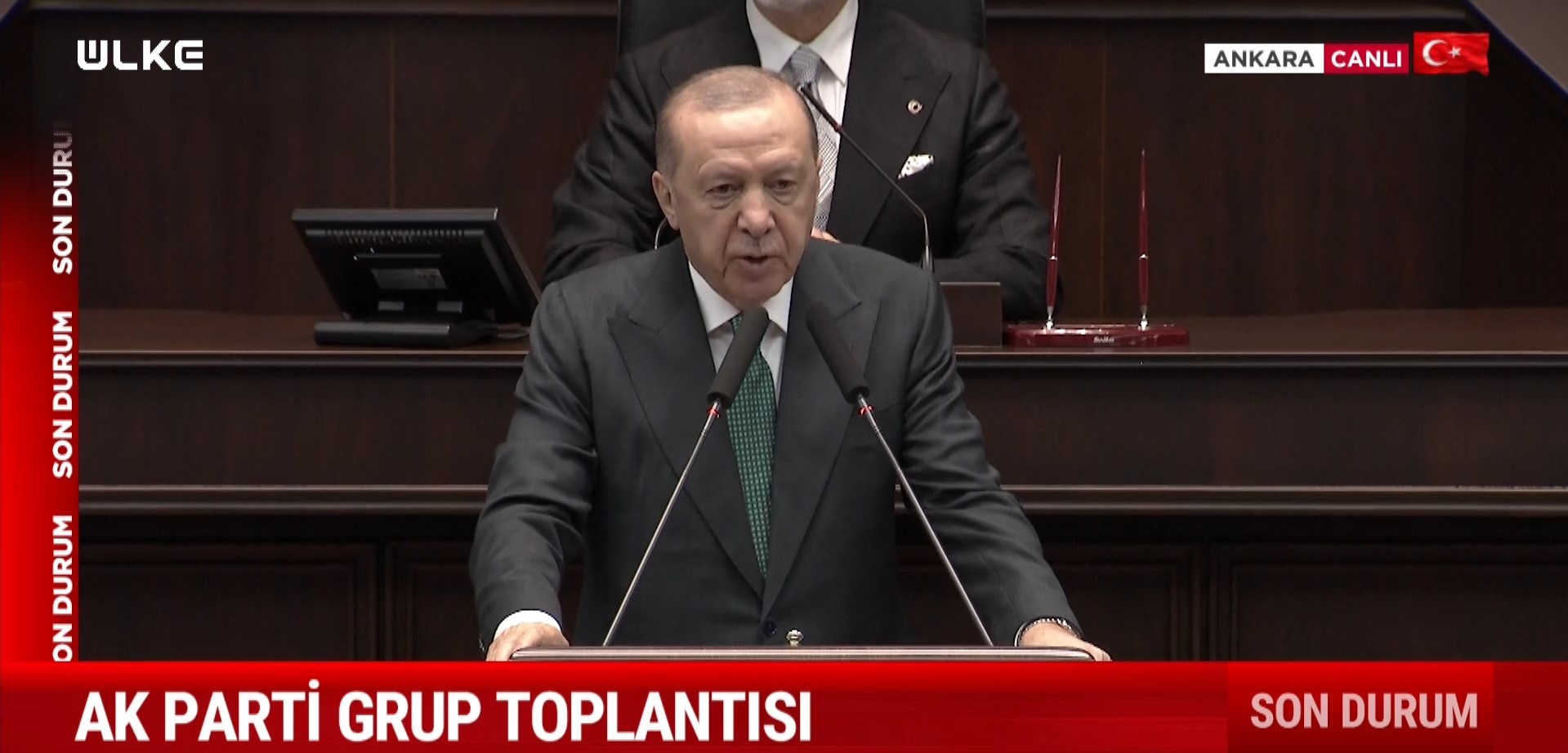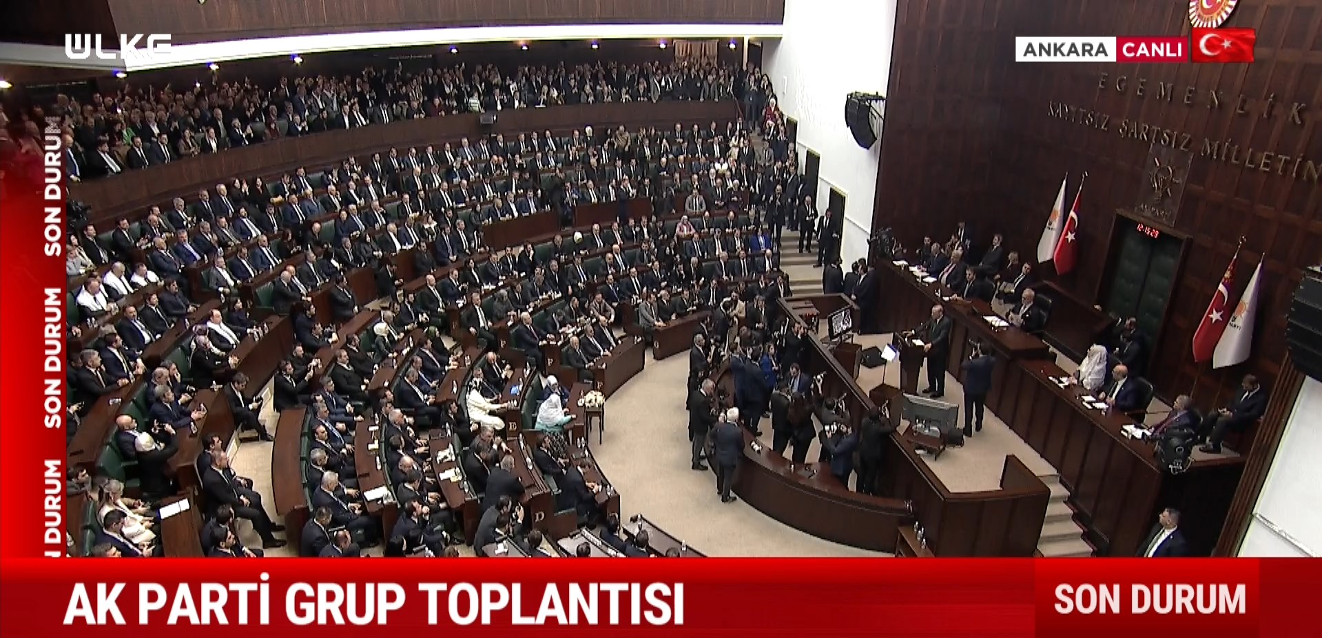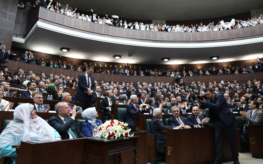 Destek gösterilerinin ardından salondaki alkışlar eşliğinde kürsüye çıkan Cumhurbaşkanı Erdoğan’ın AK Parti TBMM Grup Toplantısı'nda hitap etti.