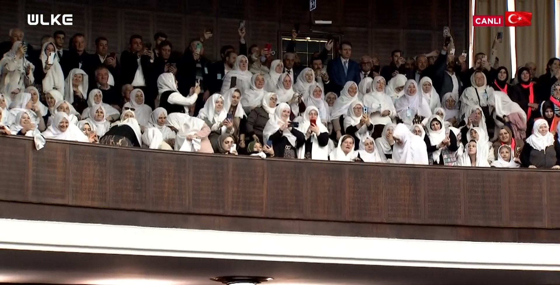 Cumhurbaşkanı Erdoğan'ın grup toplantısına davet ettiği Eskişehir'in Mihalgazi Belediye Başkanı Zeynep Güneş ve beraberindeki 100 kadın Meclis'e geldi.