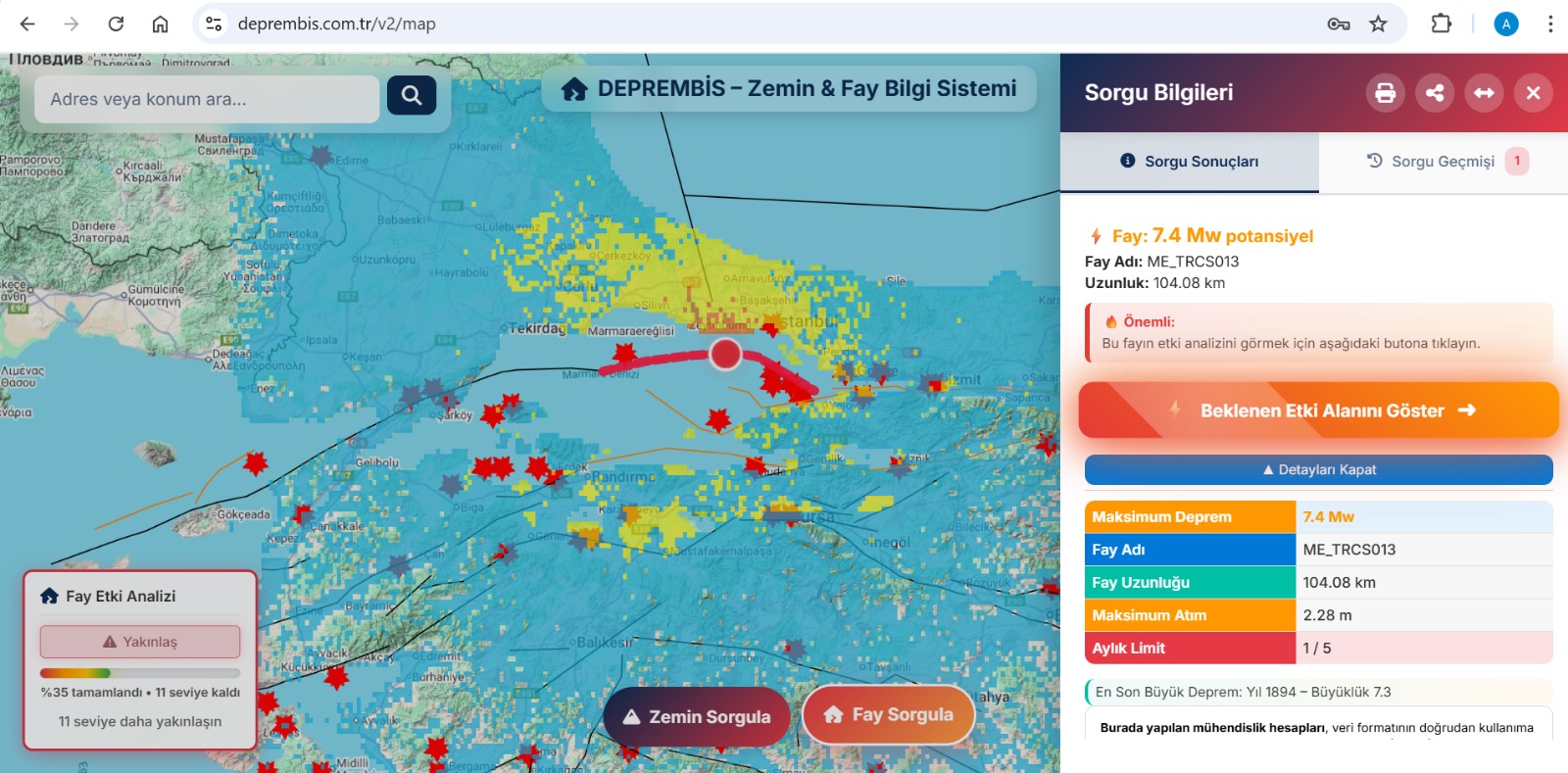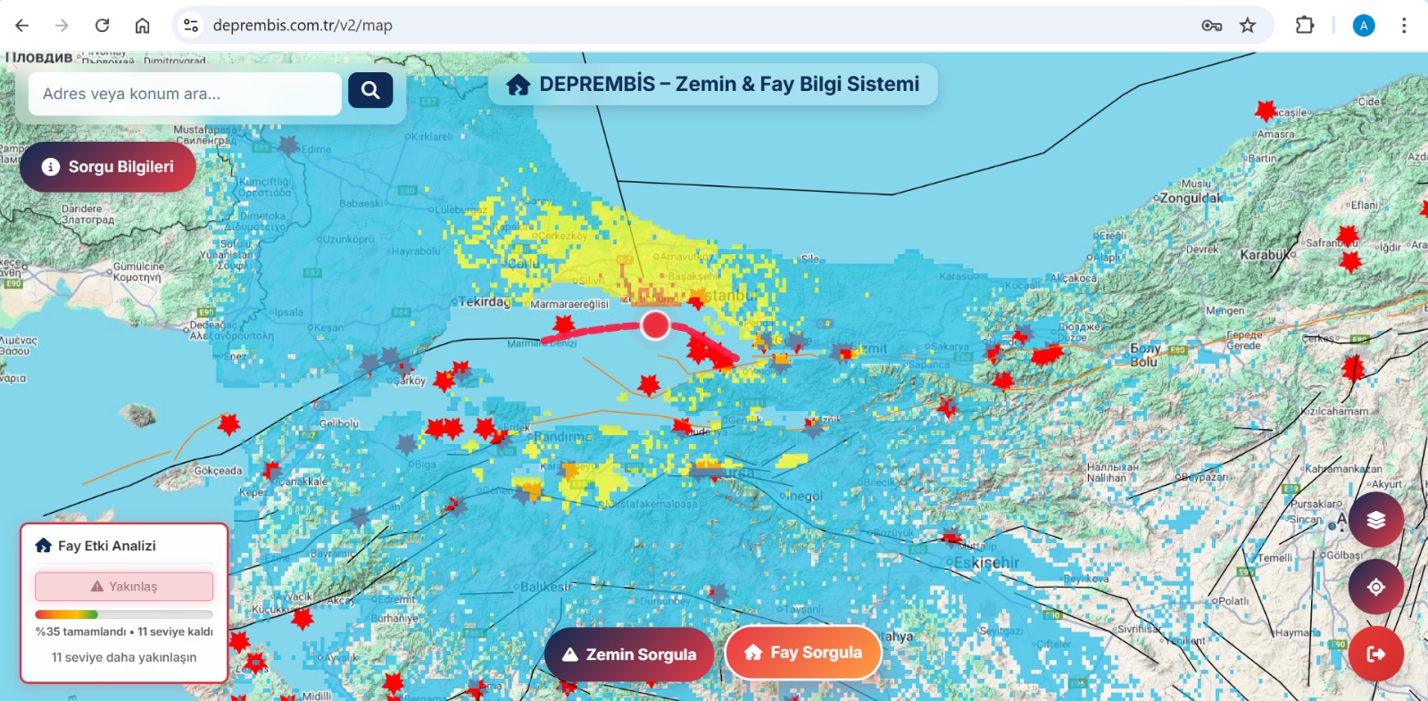 Şu ana kadar Türkiye’de bulunan 50 fay hattı incelenip yazılıma entegre edildi.