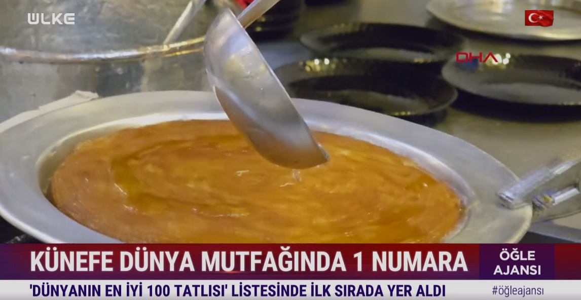 Dünya mutfaklarını değerlendiren uluslararası gastronomi platformu TasteAtlas’ın açıkladığı 'Dünyanın en iyi 100 tatlısı' listesinde Antakya künefesi birinci sırada yer aldı.