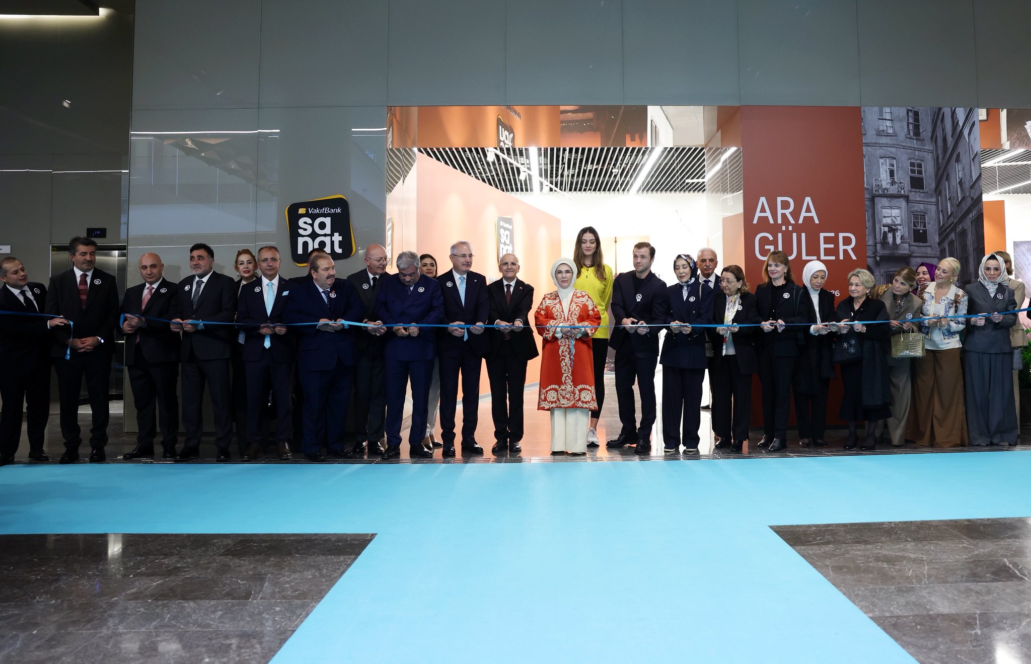 Emine Erdoğan, İstanbul Finans Merkezi'nde VakıfBank Genel Müdürlüğünün yeni faaliyete geçen VakıfBank Sanat Galerisi'nin açılış törenine katıldı.