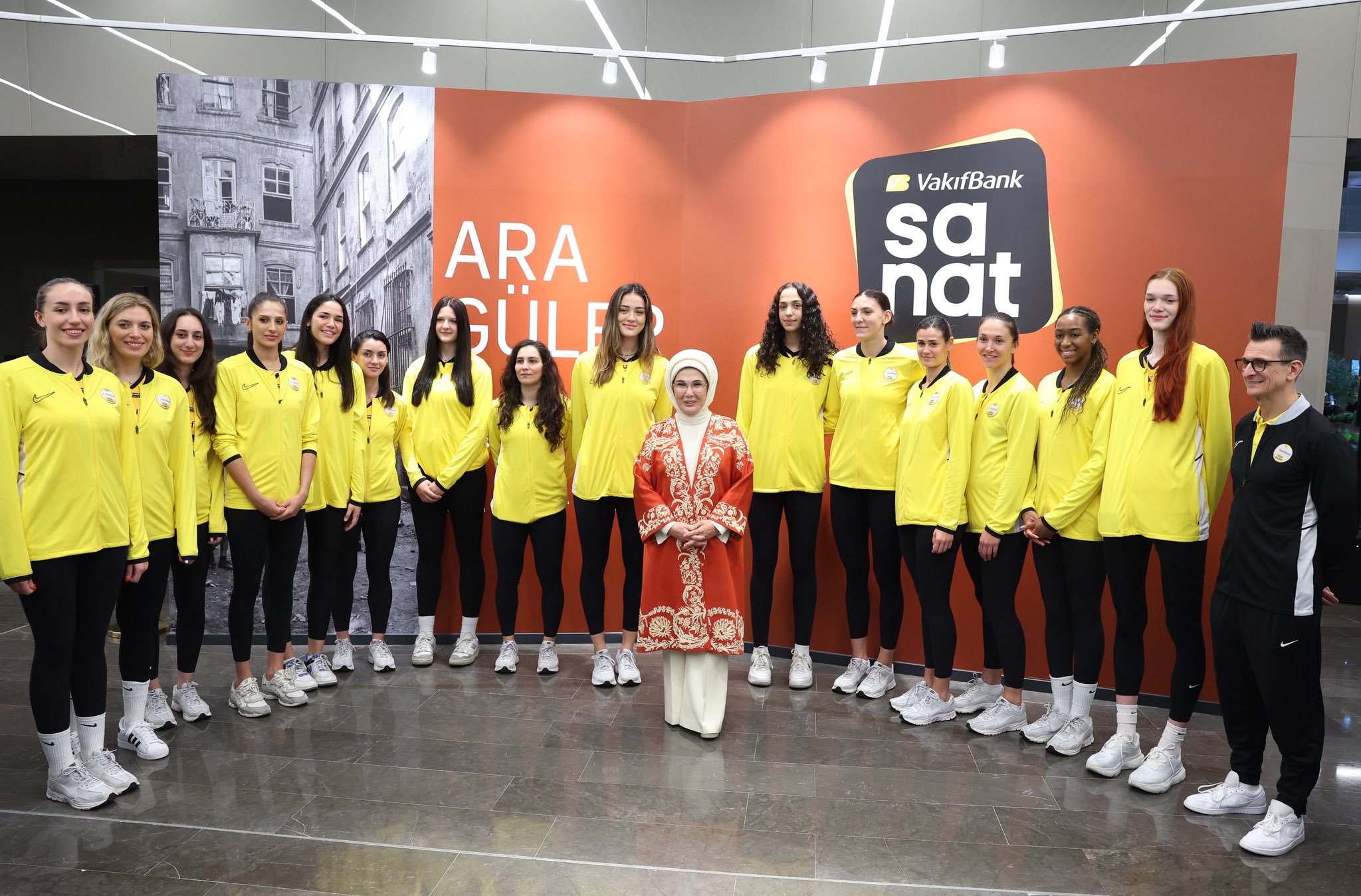 Erdoğan, sergiyi gezdikten sonra Vakıfbank Kadın Voleybol Takımı oyuncularıyla fotoğraf çektirdi.