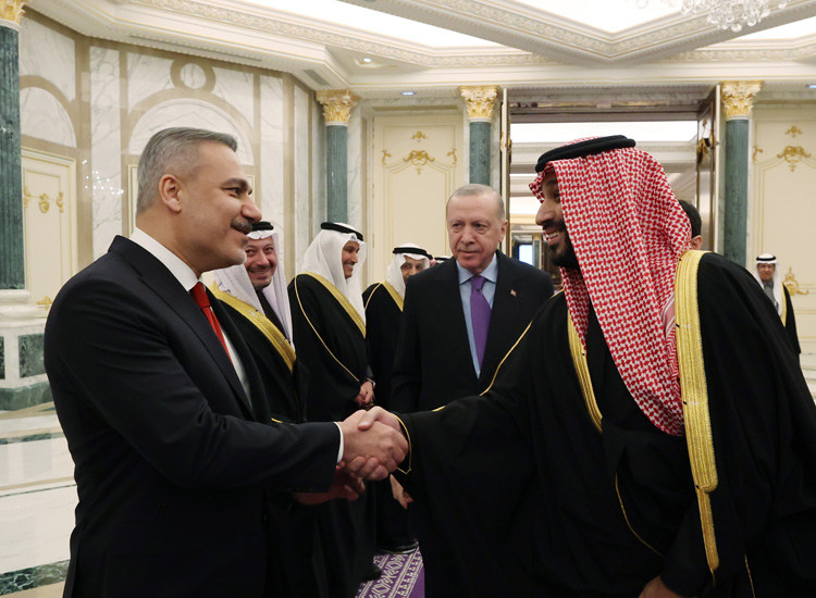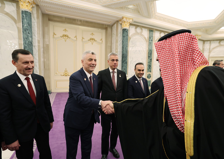 Erdoğan ile eşi Emine Erdoğan, Dışişleri Bakanı Hakan Fidan, Hazine ve Maliye Bakanı Mehmet Şimşek, Aile ve Sosyal Hizmetler Bakanı Mahinur Özdemir Göktaş, Enerji ve Tabii Kaynaklar Bakanı Alparslan Bayraktar, Sanayi ve Teknoloji Bakanı Mehmet Fatih Kacır, Gençlik ve Spor Bakanı Osman Aşkın Bak, Milli Savunma Bakanı Yaşar Güler, Sağlık Bakanı Kemal Memişoğlu, Cumhurbaşkanlığı İletişim Başkanı Burhanettin Duran, Cumhurbaşkanı Dış Politika ve Güvenlik Başdanışmanı Akif Çağatay Kılıç ile bazı yetkililer de Suudi Arabistan'a geldi.