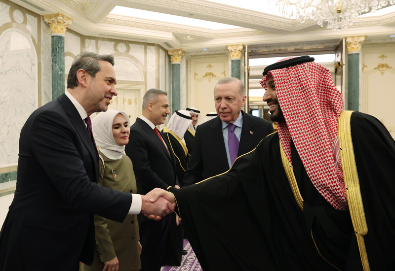 Erdoğan, burada Suudi Arabistan Veliaht Prensi Muhammed Bin Selman tarafından resmi törenle karşılandı.