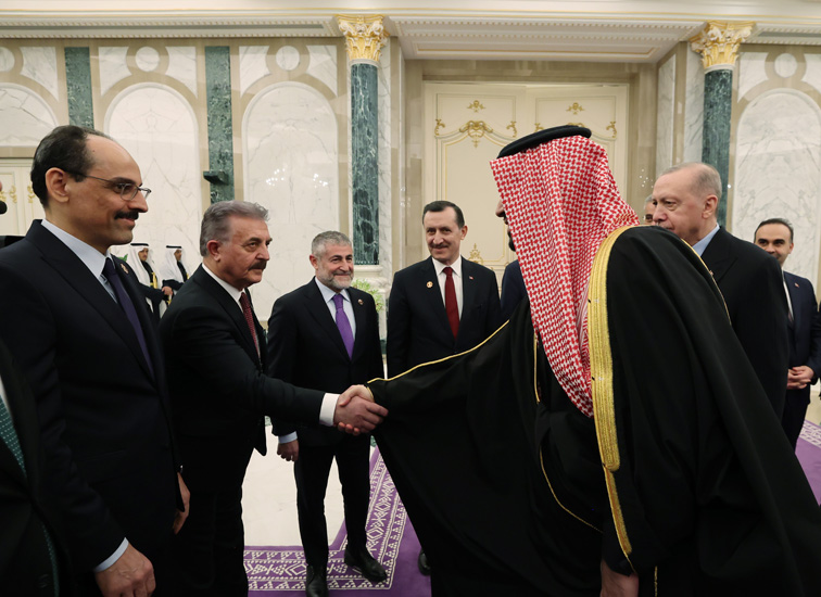 Daha sonra Cumhurbaşkanı Erdoğan, ziyareti kapsamında Riyad’daki Yemame Sarayı'nda gitti.