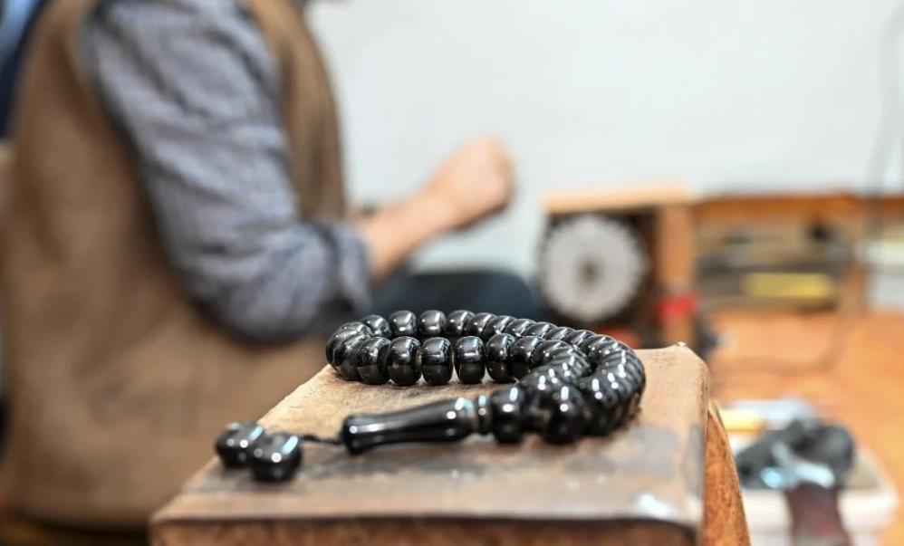 Sabahın erken saatlerinde tezgâhının başına geçen Aydın, akşam ezanına kadar çalışarak günde ortalama 5 ila 7 adet tespih üretiyor.
