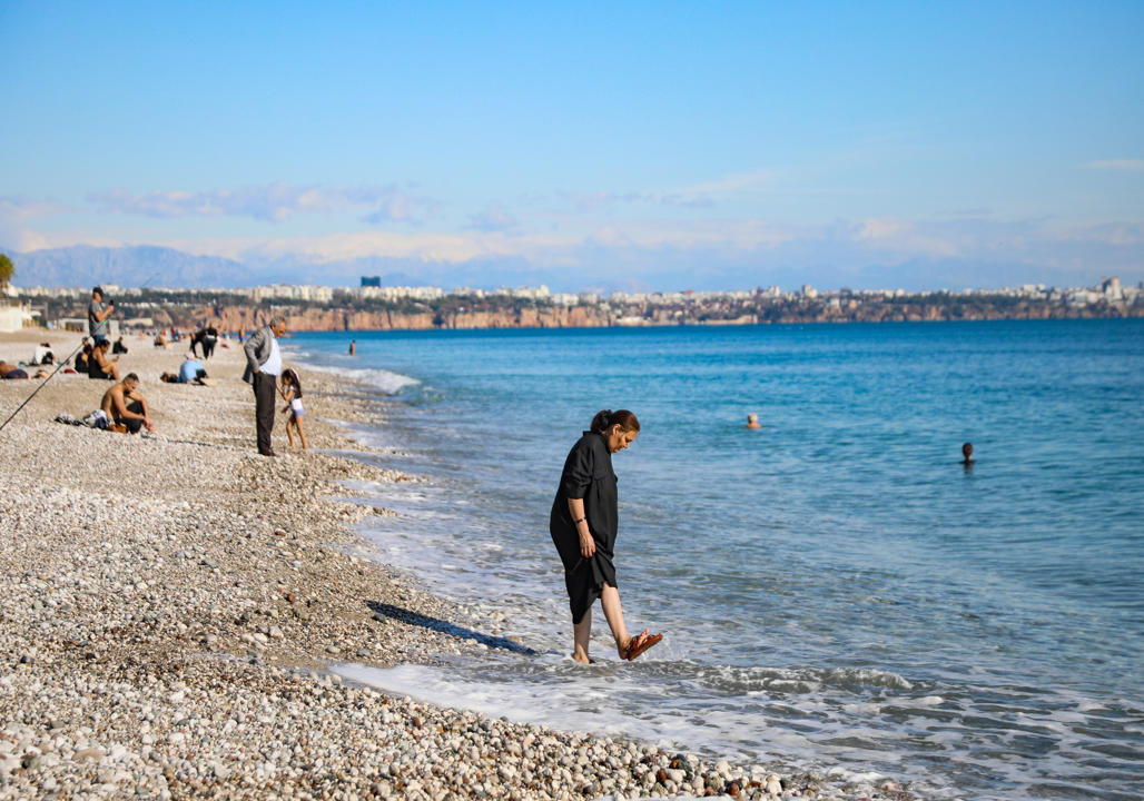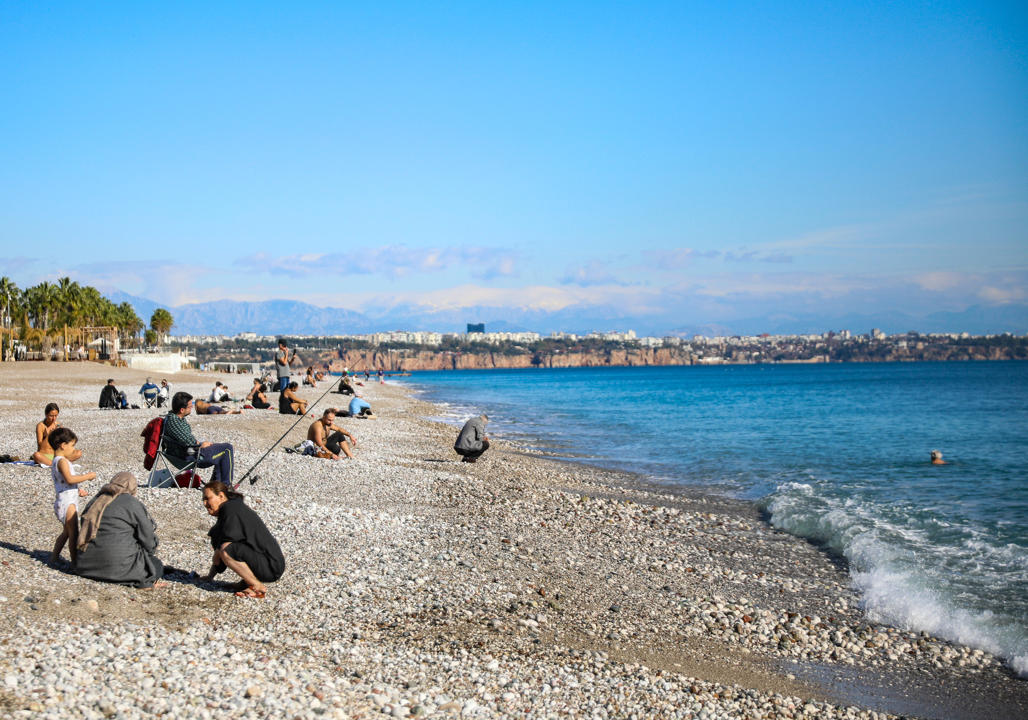 Hava sıcaklığının 22 dereceyi gördüğü kentte yaşayanlar, güneşli havayı görünce Konyaaltı Sahili'ne geldi. Sahile gelenlerin bazıları, sıcaklığı 21 derece olan denize girdi.