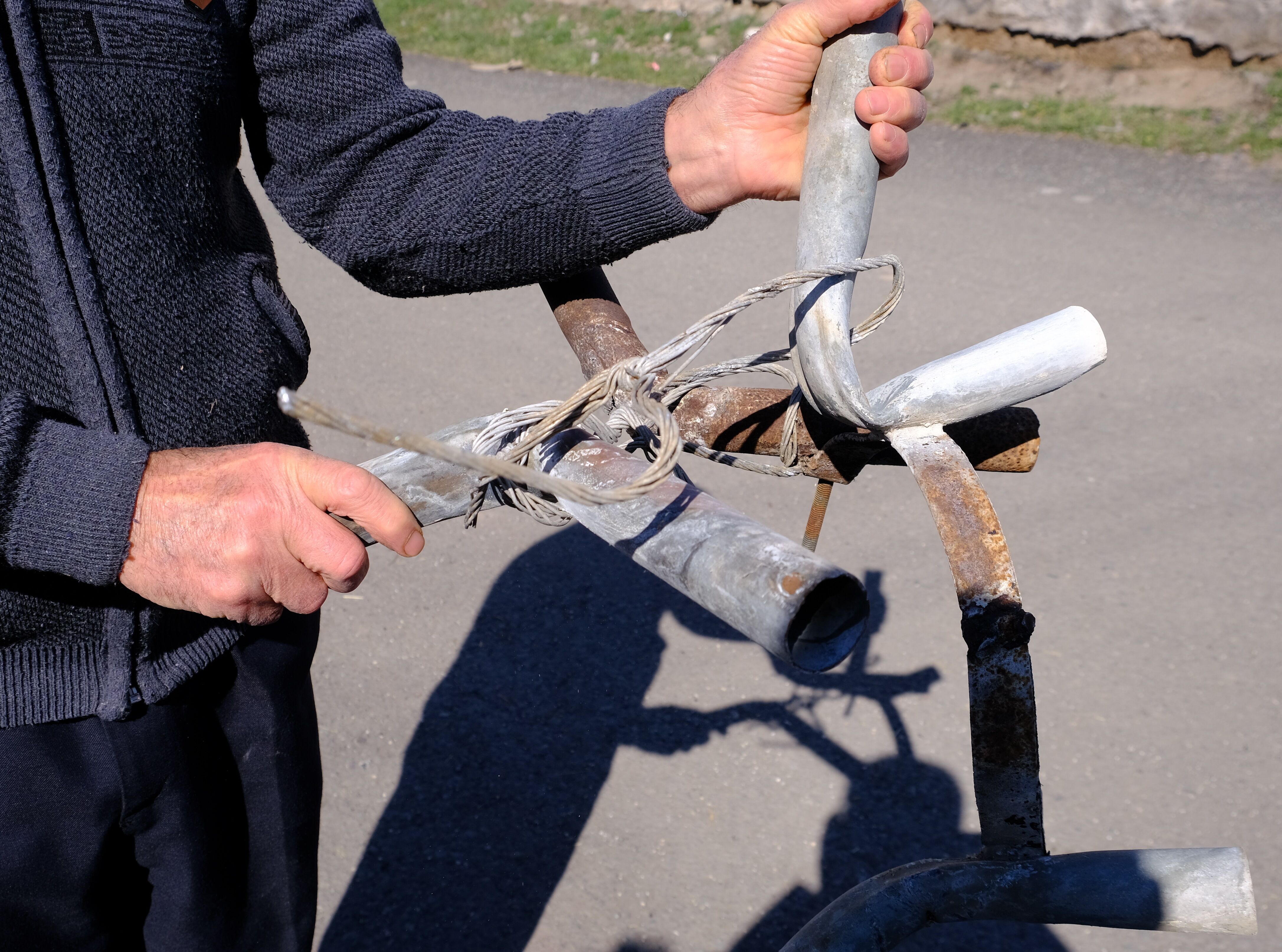 Leylekler gelmeden çalışmayı tamamlayan Gültekin, aydınlatma direğinin üzerine yeni yuvayı koydu.