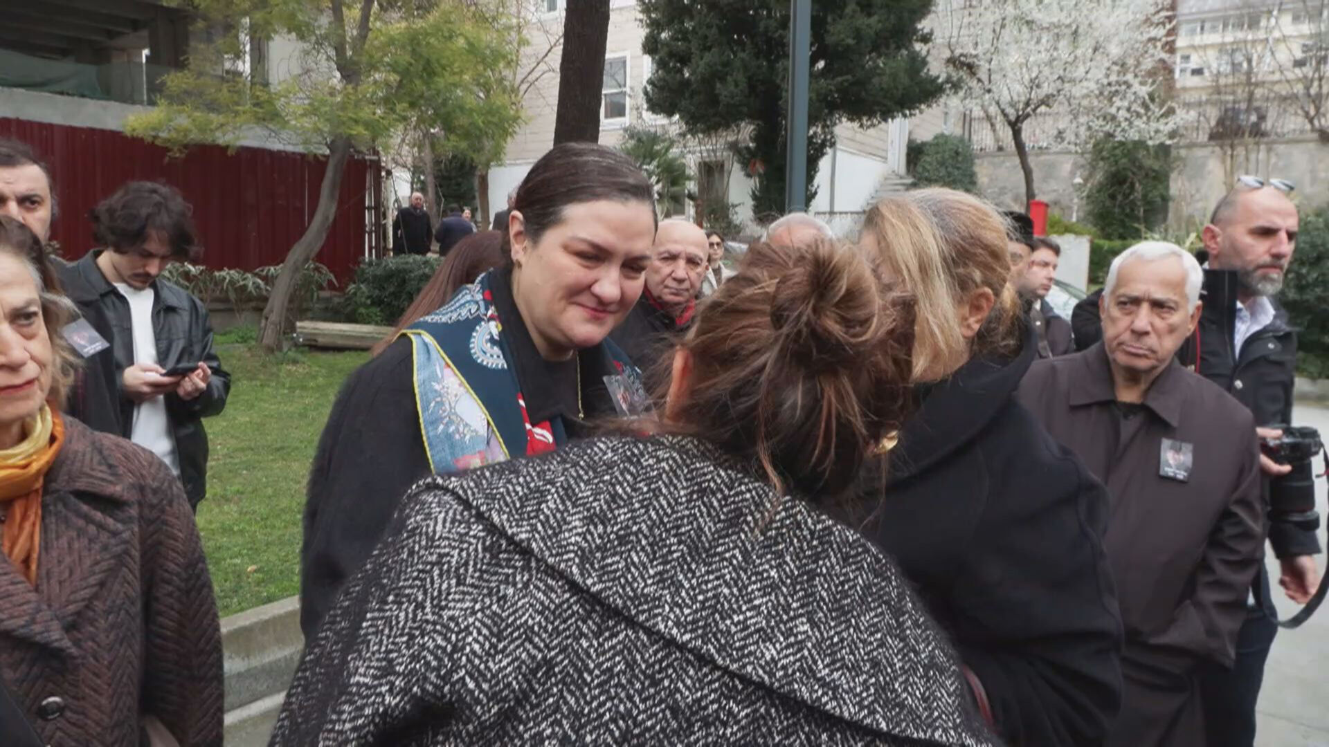 İlber Ortaylı'nın kızı Tuna Ortaylı taziyeleri kabul etti.