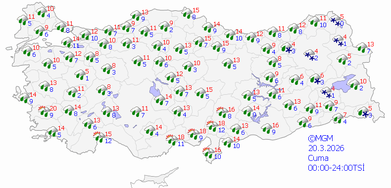Yağışların genellikle yağmur ve sağanak, Doğu Karadeniz’in iç kesimlerinin yüksekleri ile Doğu Anadolu’nun doğusunda karla karışık yağmur ve kar şeklinde olması bekleniyor. Yağışların, Hatay çevrelerinde yerel kuvvetli olacağı tahmin ediliyor.