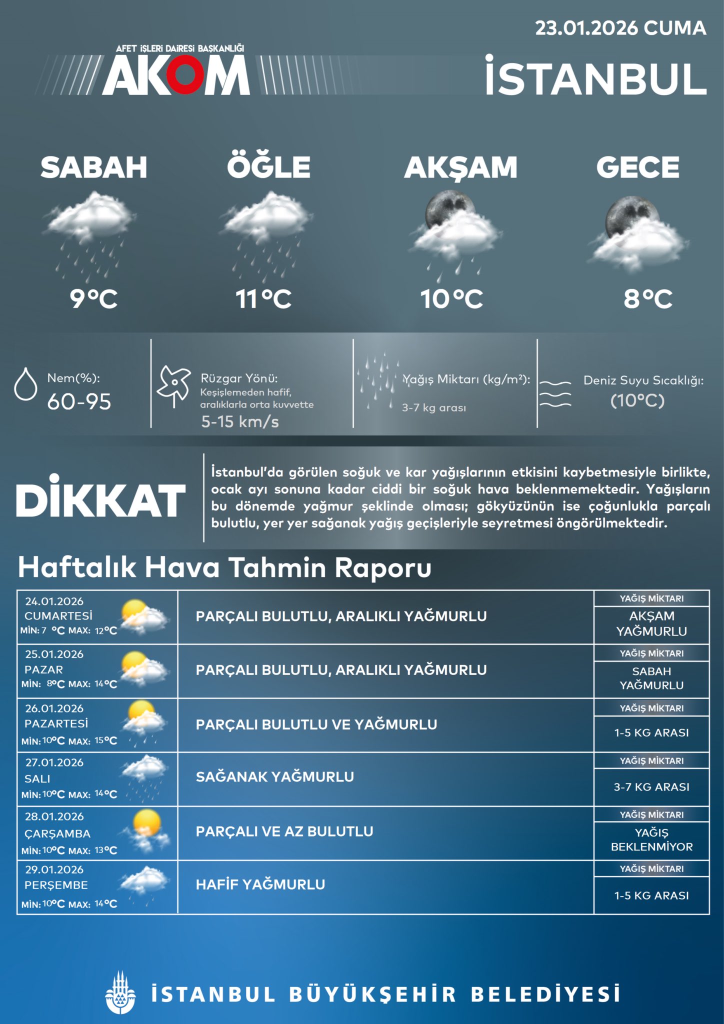 AKOM’dan yapılan son hava durumu tahmini şu şekilde: