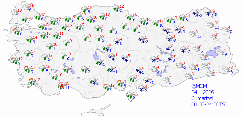 Marmara’nın batısı, Kıyı Ege, Antalya, Hatay ve Osmaniye'de kuvvetli yağmur ve sağanak yağış, Güneydoğu Anadolu ile Sivas, Kayseri, Yozgat, Nevşehir, Elazığ, Tunceli, Bitlis, Bingöl, Malatya ve Kahramanmaraş çevrelerinde kuvvetli kar yağışı olması beklendiğinden dolayı olumsuzluklara karşı dikkatli ve tedbirli olunması gerekmektedir.