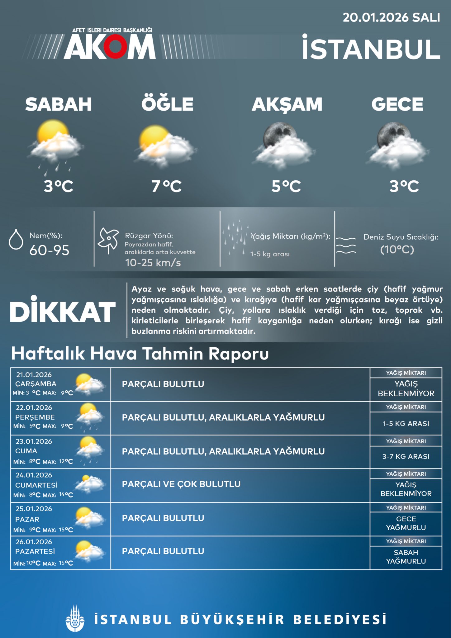 Öte yandan İstanbul için AKOM'dan "gizli buzlanma" uyarısı geldi.