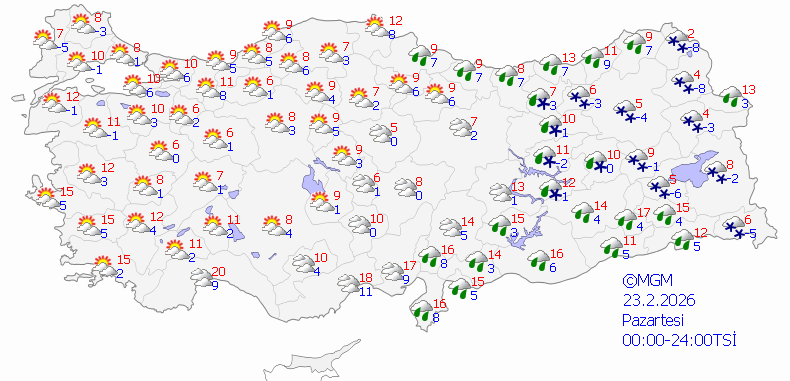 Hava sıcaklığının batı kesimlerde 3 ila 5 derece artacağı, iç ve doğu bölgelerde 2 ila 4 derece azalacağı, diğer yerlerde önemli bir değişiklik beklenmiyor.
