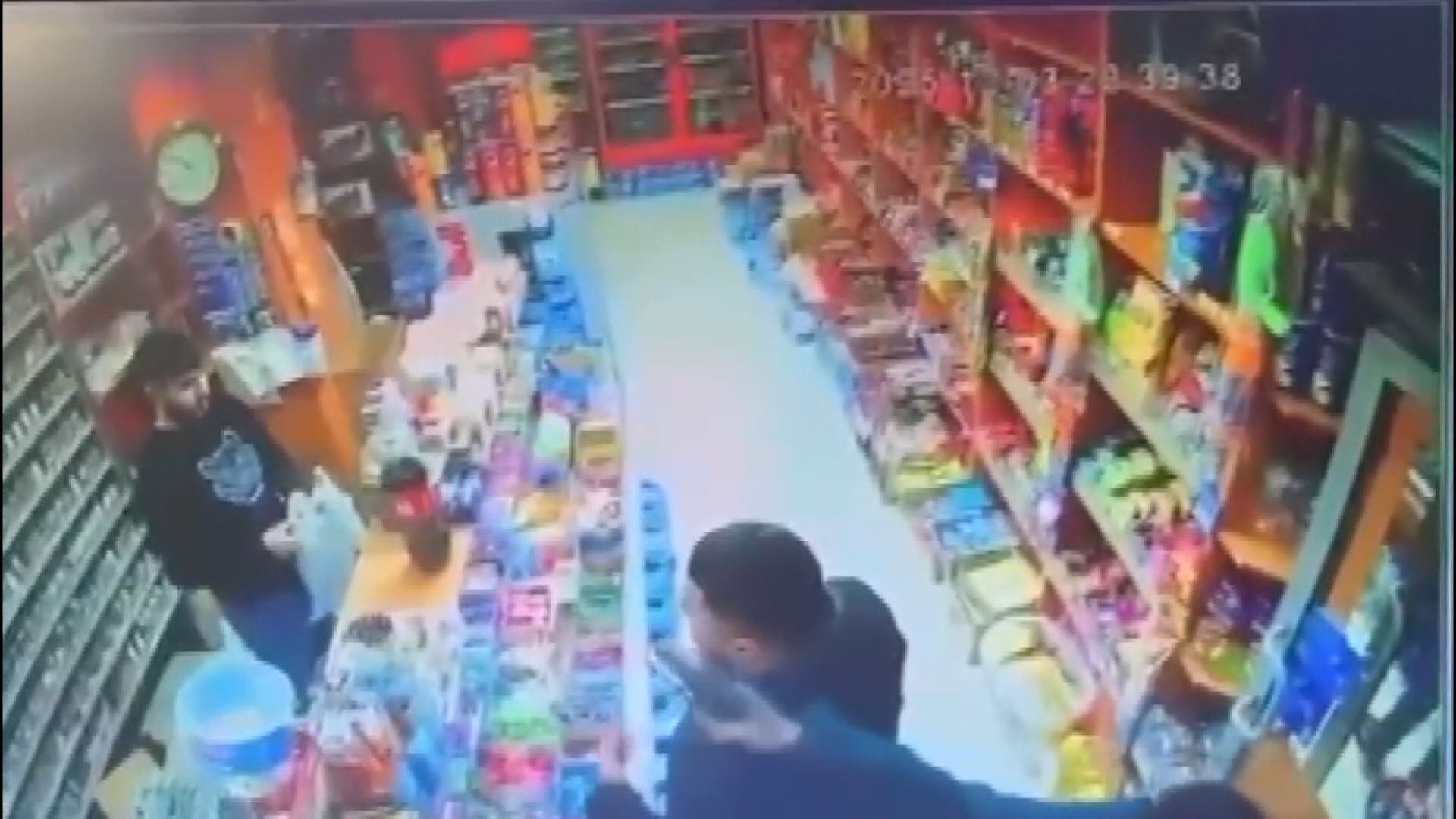 Müşteri gibi davranarak alışveriş yapan saldırgan, kasanın bulunduğu bölüme gelip bir müşterinin arkasında bekledi.