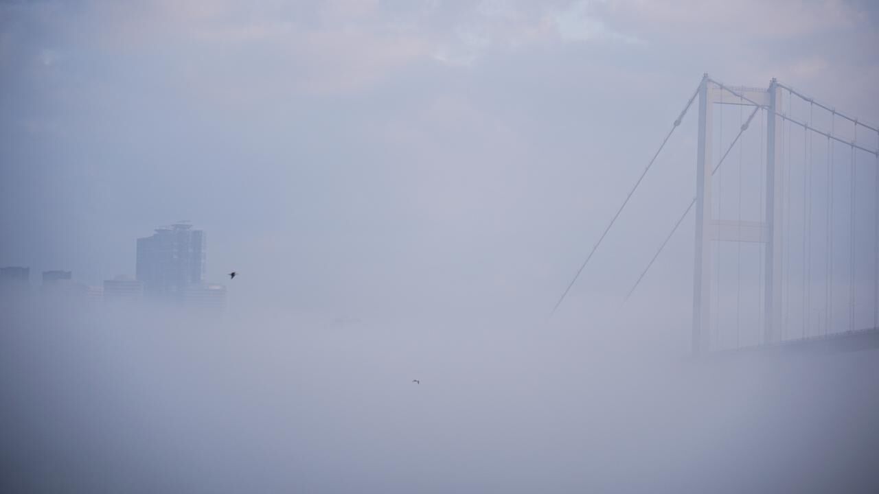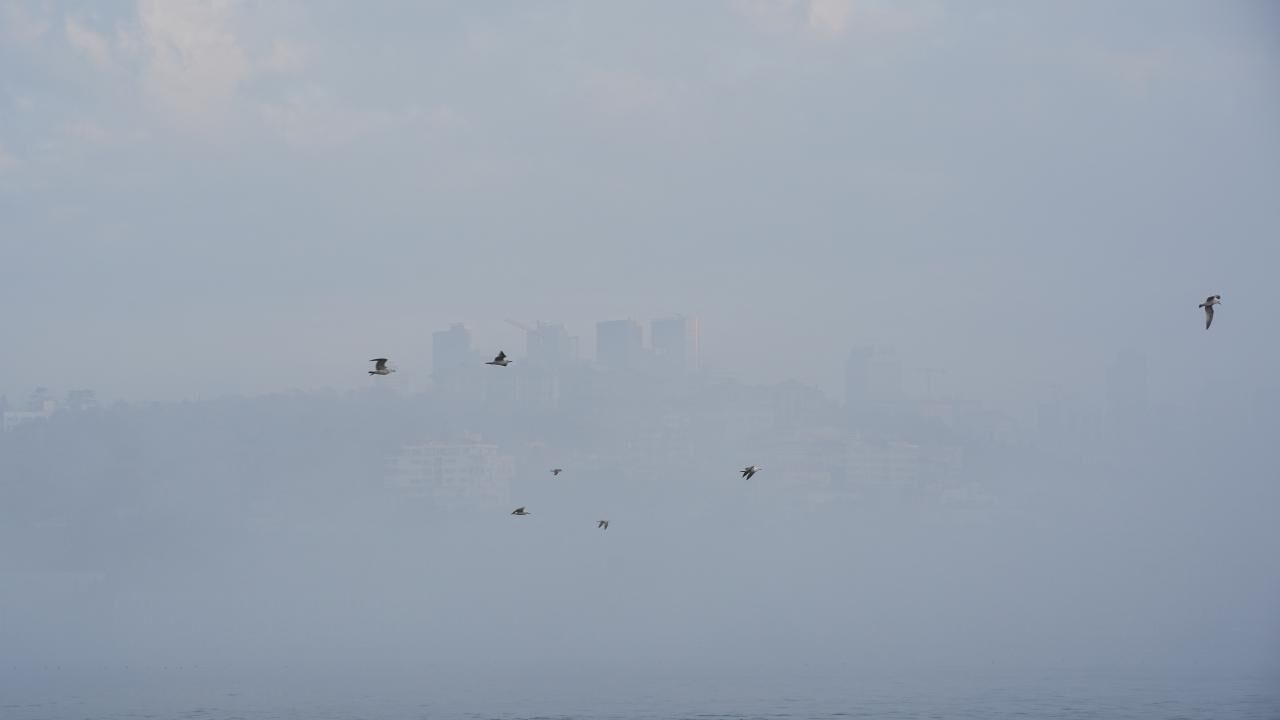 Sis nedeniyle yüksek binaların üst katları, camilerin minareleri görünmez hale geldi.